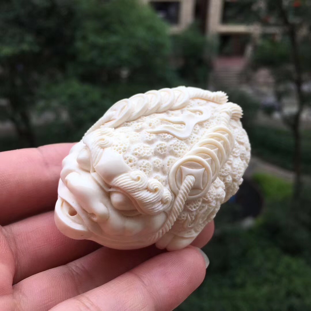 【龍蛋】 精選爆滿紋原色牙料,蟲蟲大師手工精雕,猛犸牙多少錢一克?¥.00 -