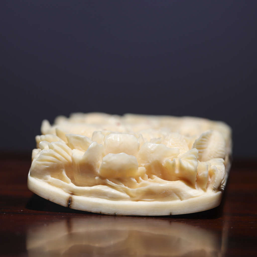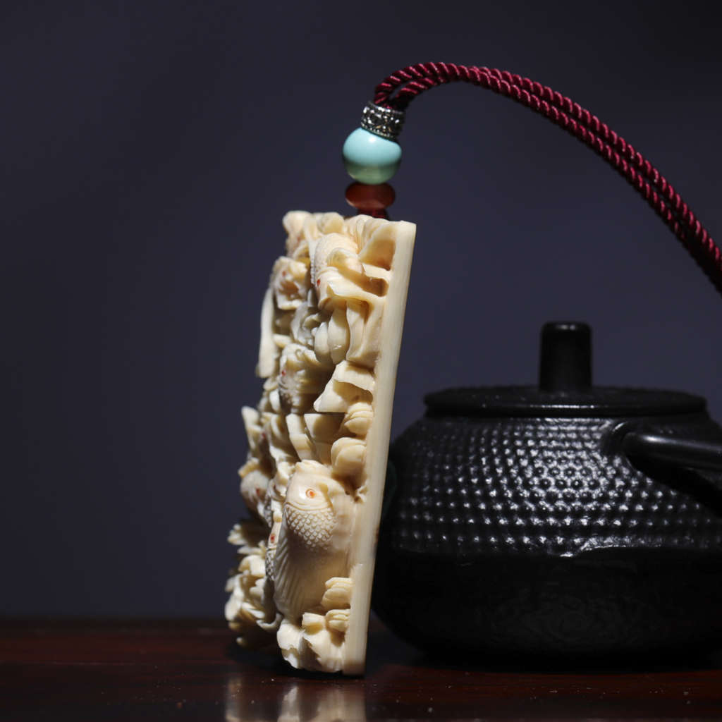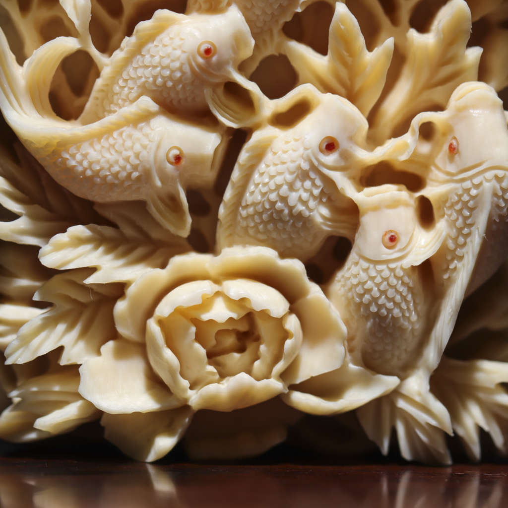 【猛犸牙雕作品】《九鯉富貴》,鯉魚牡丹皆為吉祥富貴的象征,寓意招財進寶、富貴吉祥。同時亦有鯉魚逆流前進、躍門化龍之說,寓意升官發(fā)財、飛黃騰達。精選猛犸帶皮冰料!料子潤澤,紋路清晰,老師傅純手雕刻,細節(jié)完美!