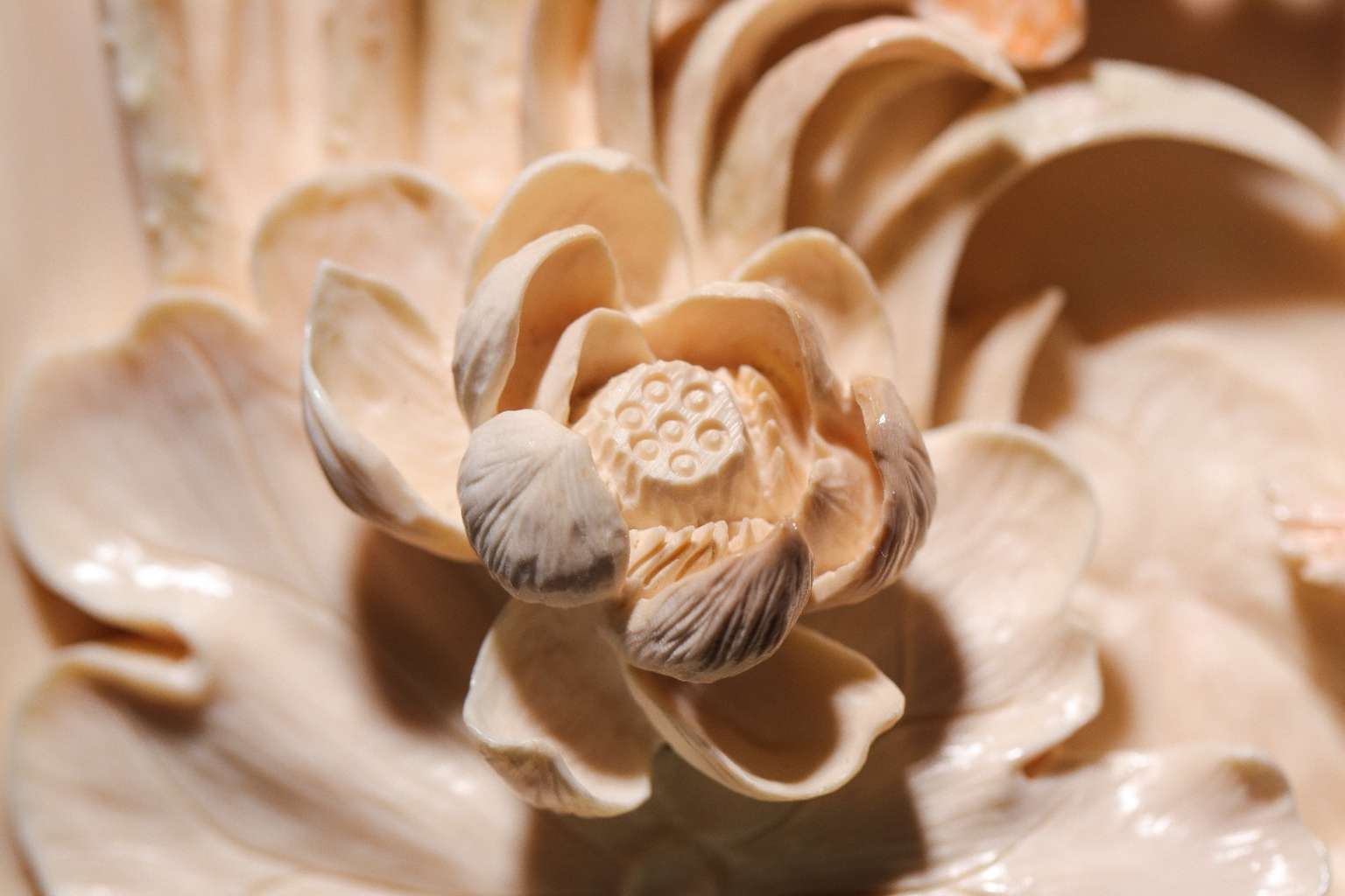 【猛犸牙雕】《荷花鯉魚擺件》荷花象征著純潔清白 鯉魚象征著富貴有余 青蛙象征著多子多福