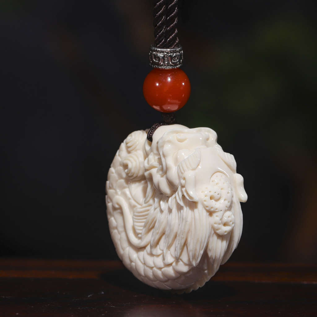 【猛犸牙雕作品】《魚化龍》,精選上乘冰料!紋路飽滿,質感潤澤!“龍頭魚身”是鯉魚誤吞龍珠而羽化成龍的典故,寓意一步登天,輝煌騰達!