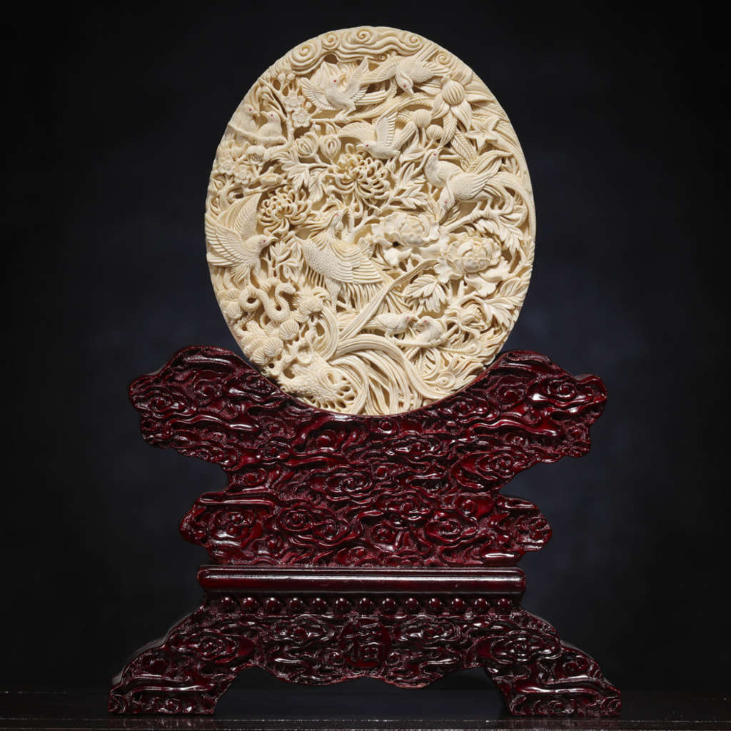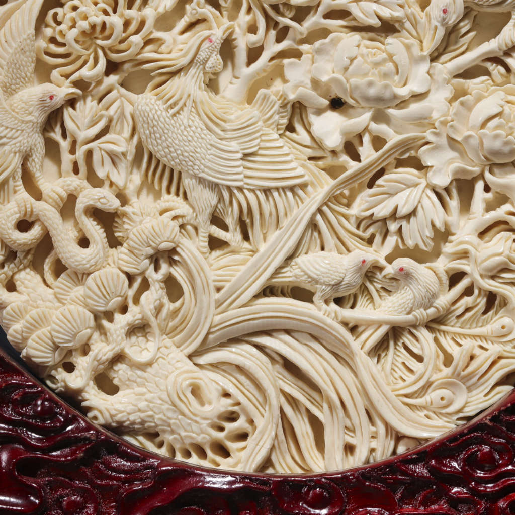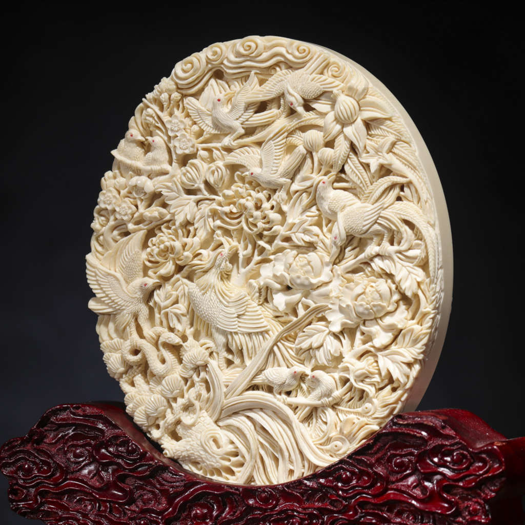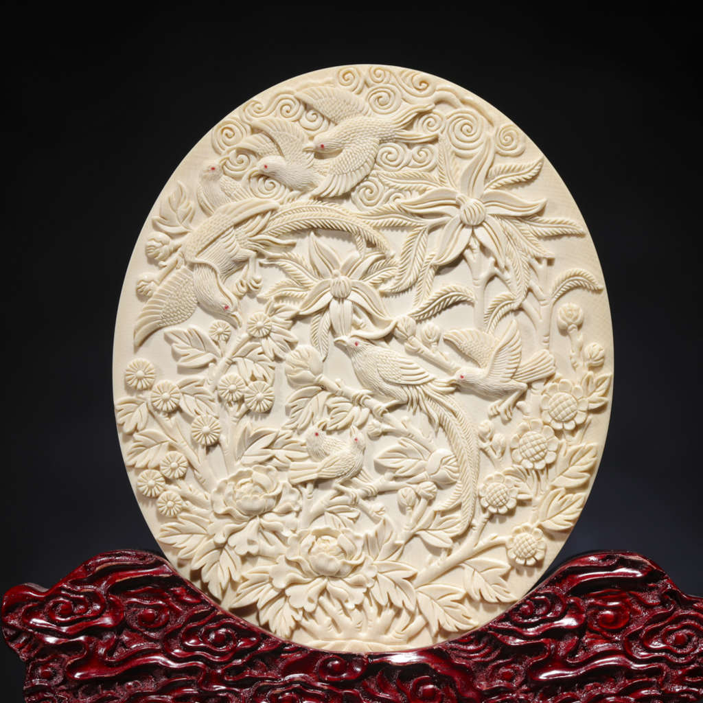 【猛犸牙雕作品】《百鳥朝鳳》靈性十足 是一件非常適合擺放鑒賞的佳作