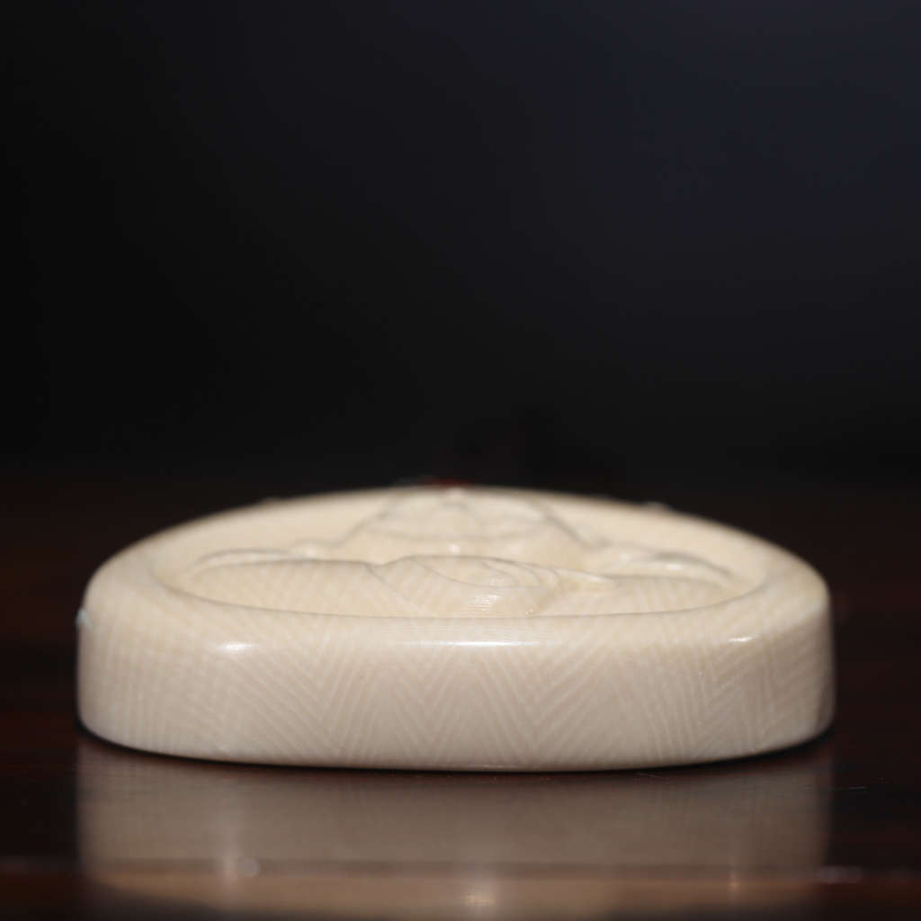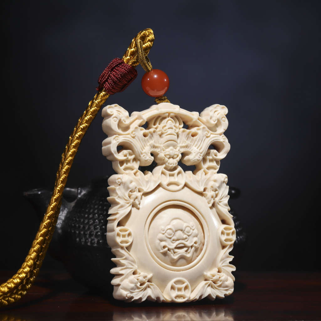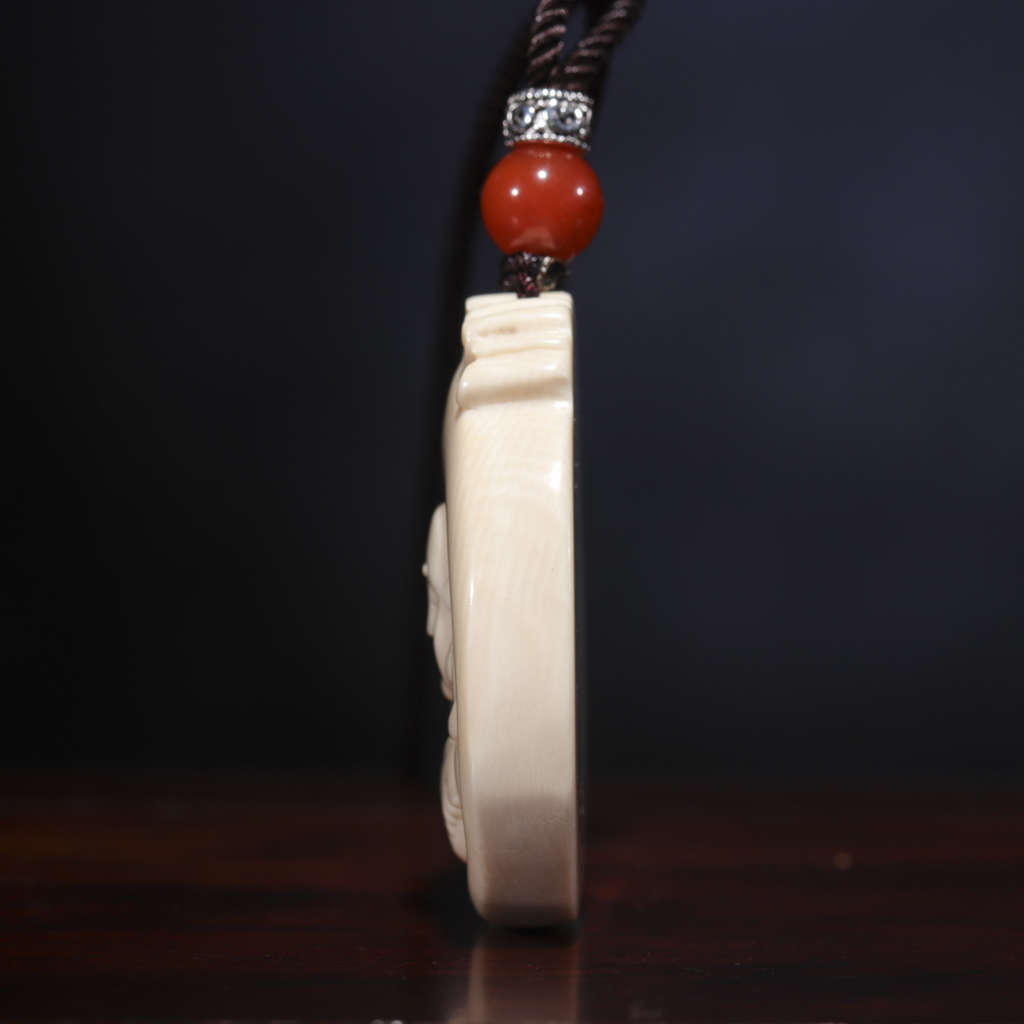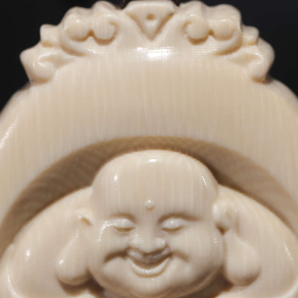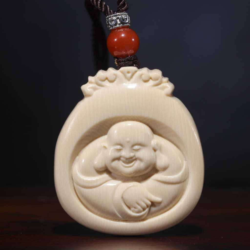 【猛犸牙雕作品】《佛牌》精選冰料,色澤水潤,整體雕工流暢細膩。人物刻畫生動形象,彌勒體態(tài)詼諧,神態(tài)親和喜慶,宛若置身于布袋之中,寓意吉祥如意,福氣滿滿!