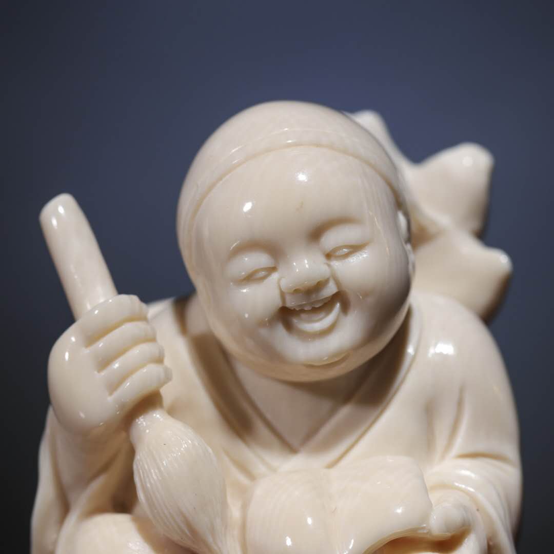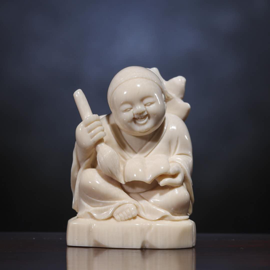 猛犸象牙《小書童》細節(jié)刻畫生動活潑,線條靈動俏皮 整個形象活靈活現(xiàn) 靈性十足