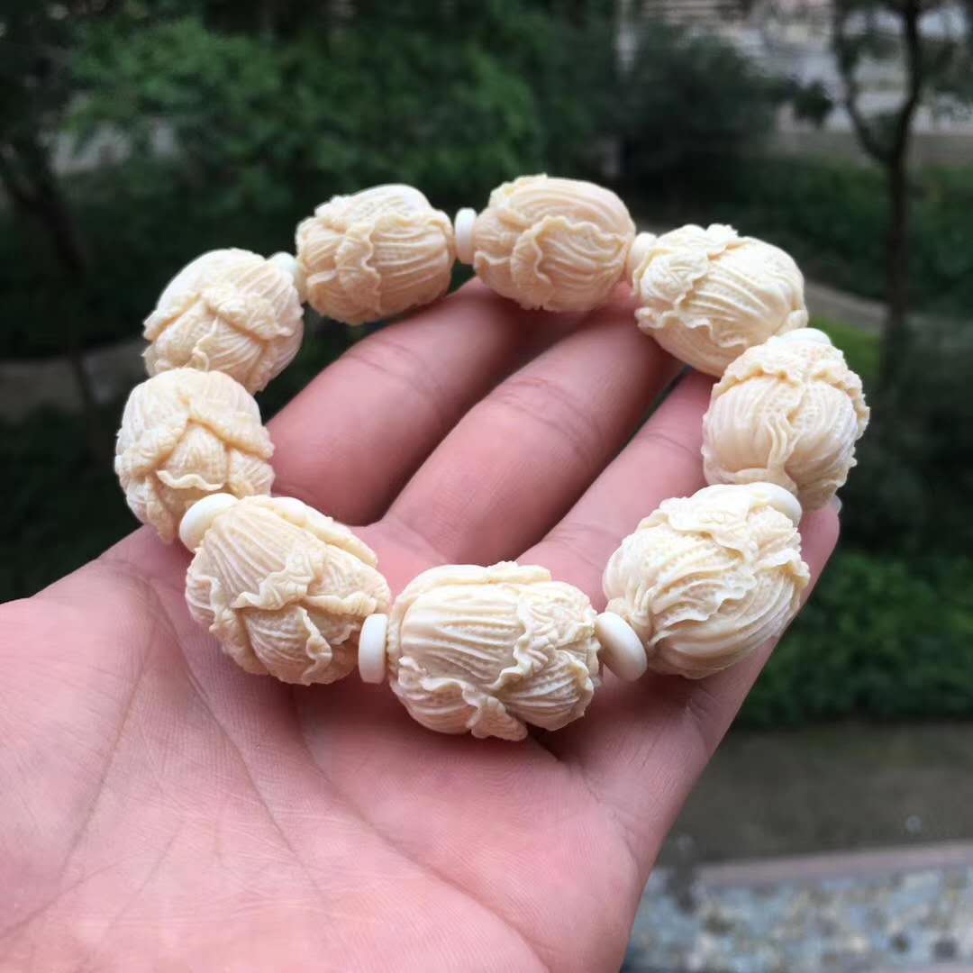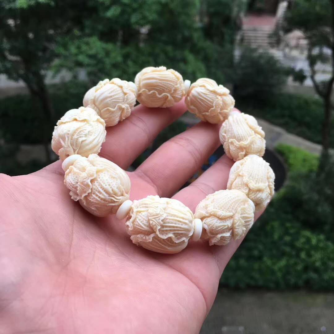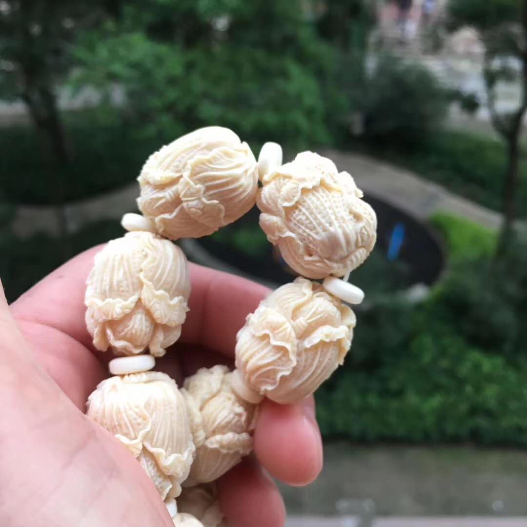 猛犸牙雕白菜手串,意為百財聚財招財發(fā)財,百財聚來的美好寓意,顆顆精挑細(xì)選把玩易包漿,好上色,料色水潤透光紅潤。20×24mm,70g