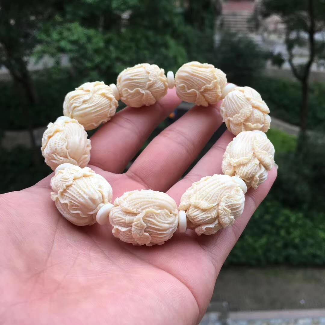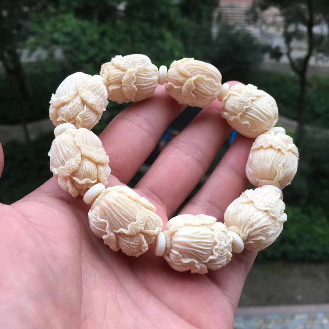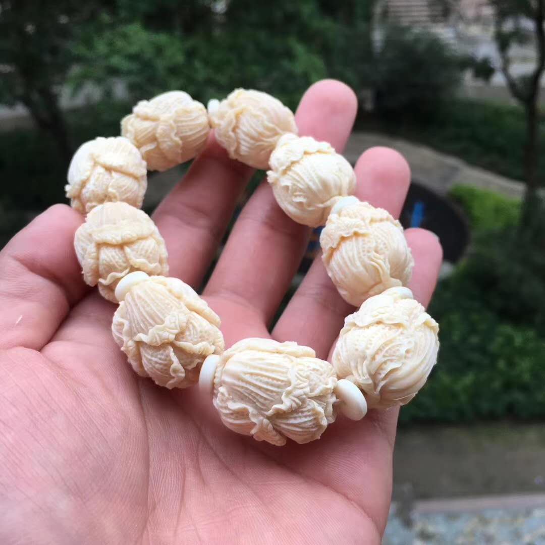 猛犸牙雕白菜手串,意為百財聚財招財發(fā)財,百財聚來的美好寓意,顆顆精挑細(xì)選把玩易包漿,好上色,料色水潤透光紅潤。20×24mm,70g