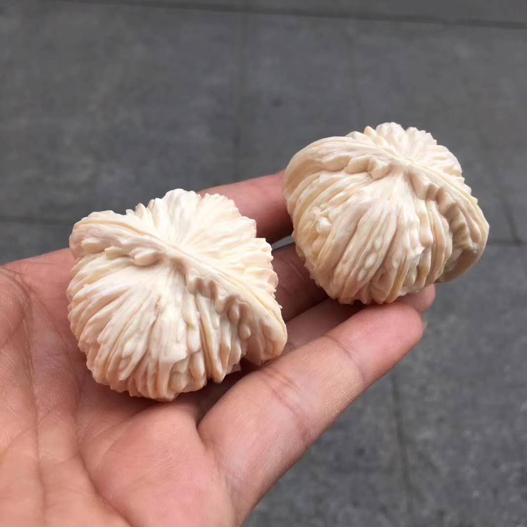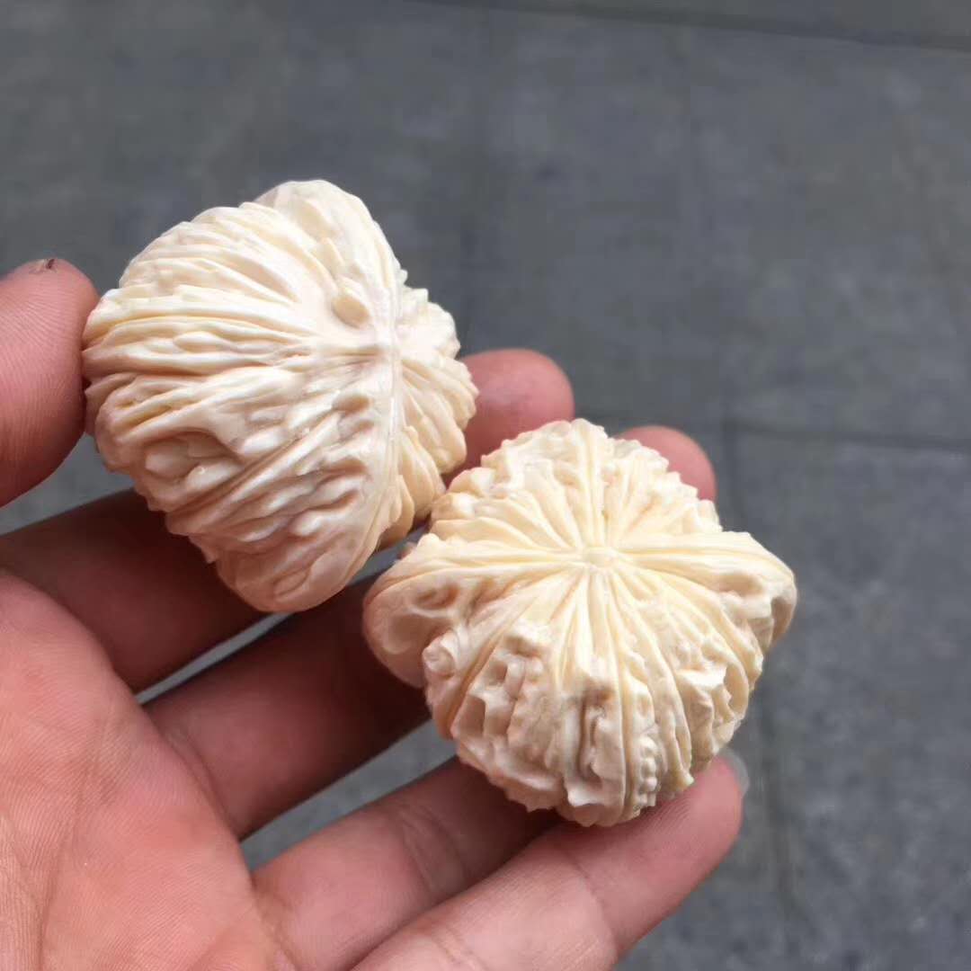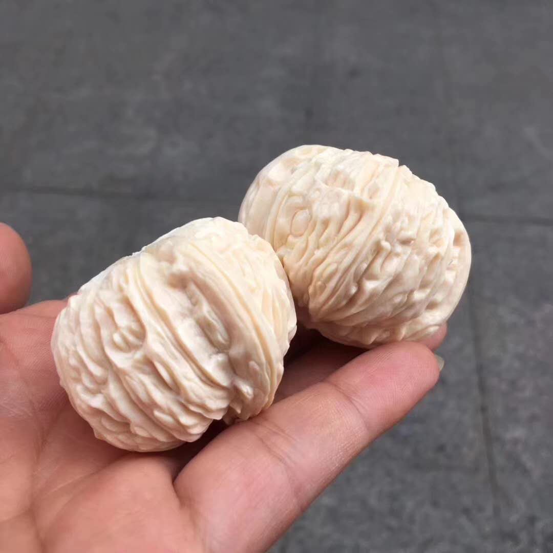 猛犸牙雕雙棱核桃手玩 幾經把耍包漿更佳渾厚潤澤