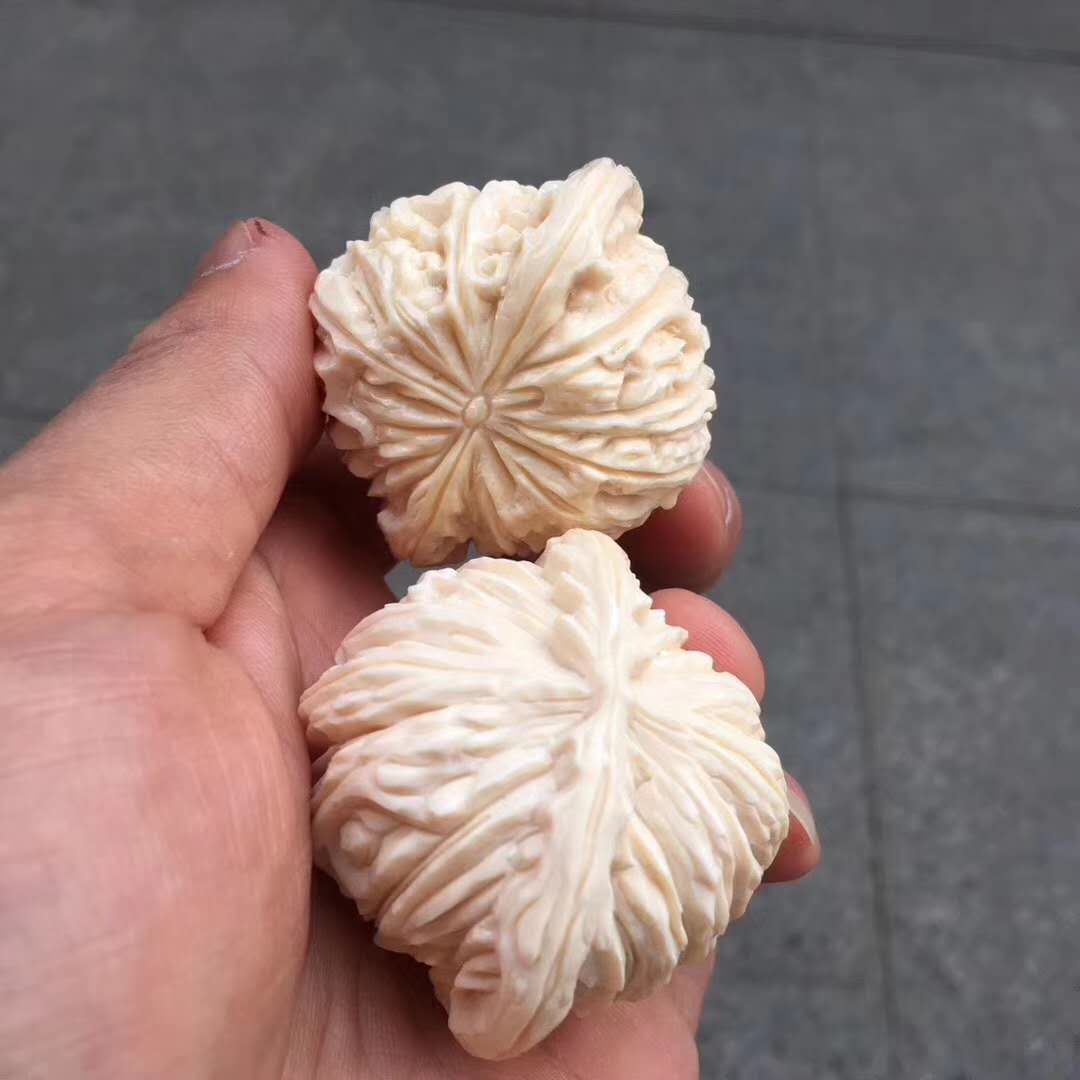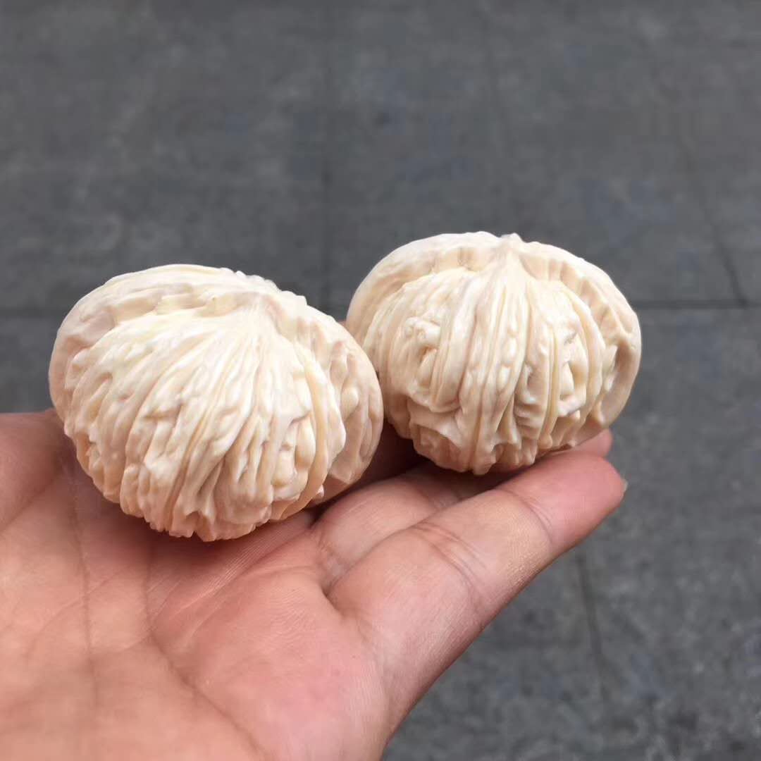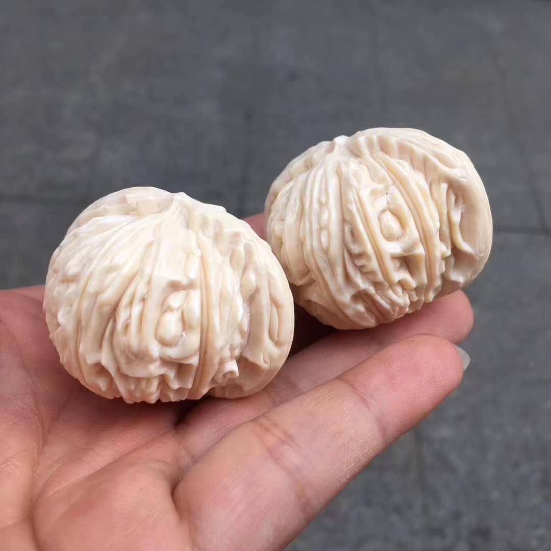猛犸牙雕雙棱核桃手玩 幾經把耍包漿更佳渾厚潤澤