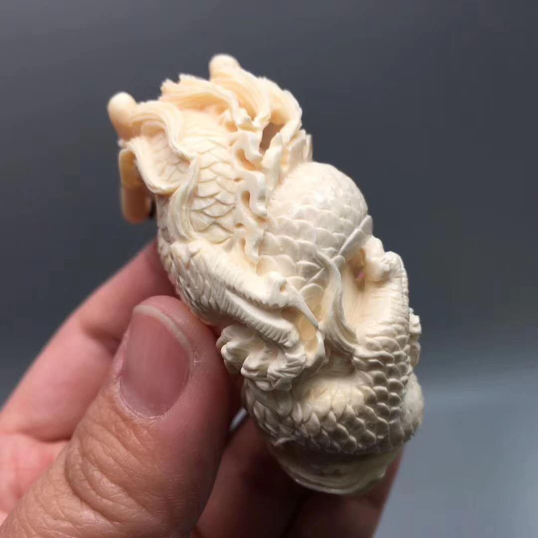 猛犸牙白冰料精工細作,蟲蟲大師純手工雕刻《盤龍牙尖》吊墜把件均可,純手工鏤空雕刻,工藝無可挑剔!細節品質完美,精琢,佩戴高端大氣,性價比極高,配送精品禮盒,尺寸70㎜×27㎜,重約51.6g