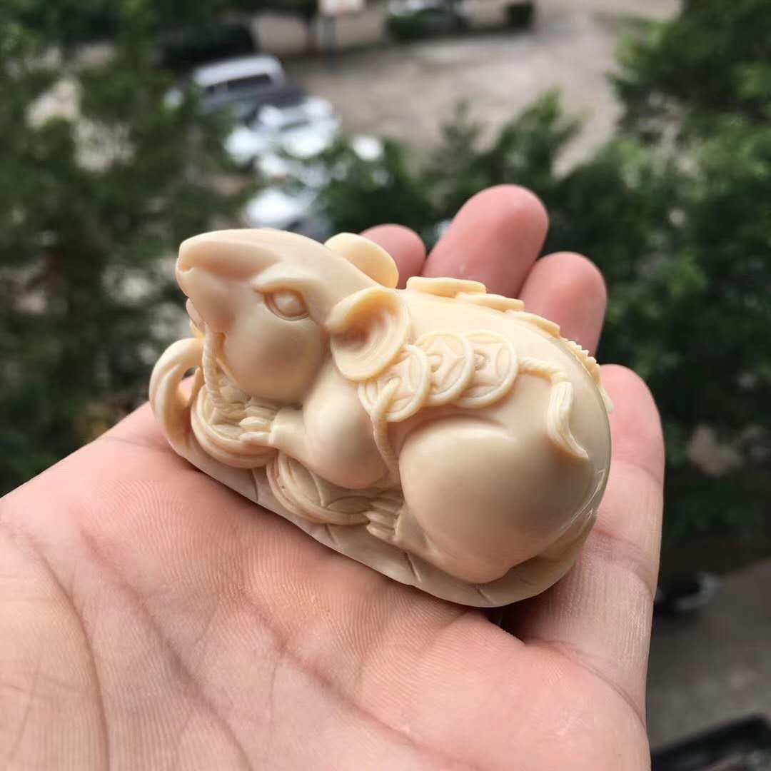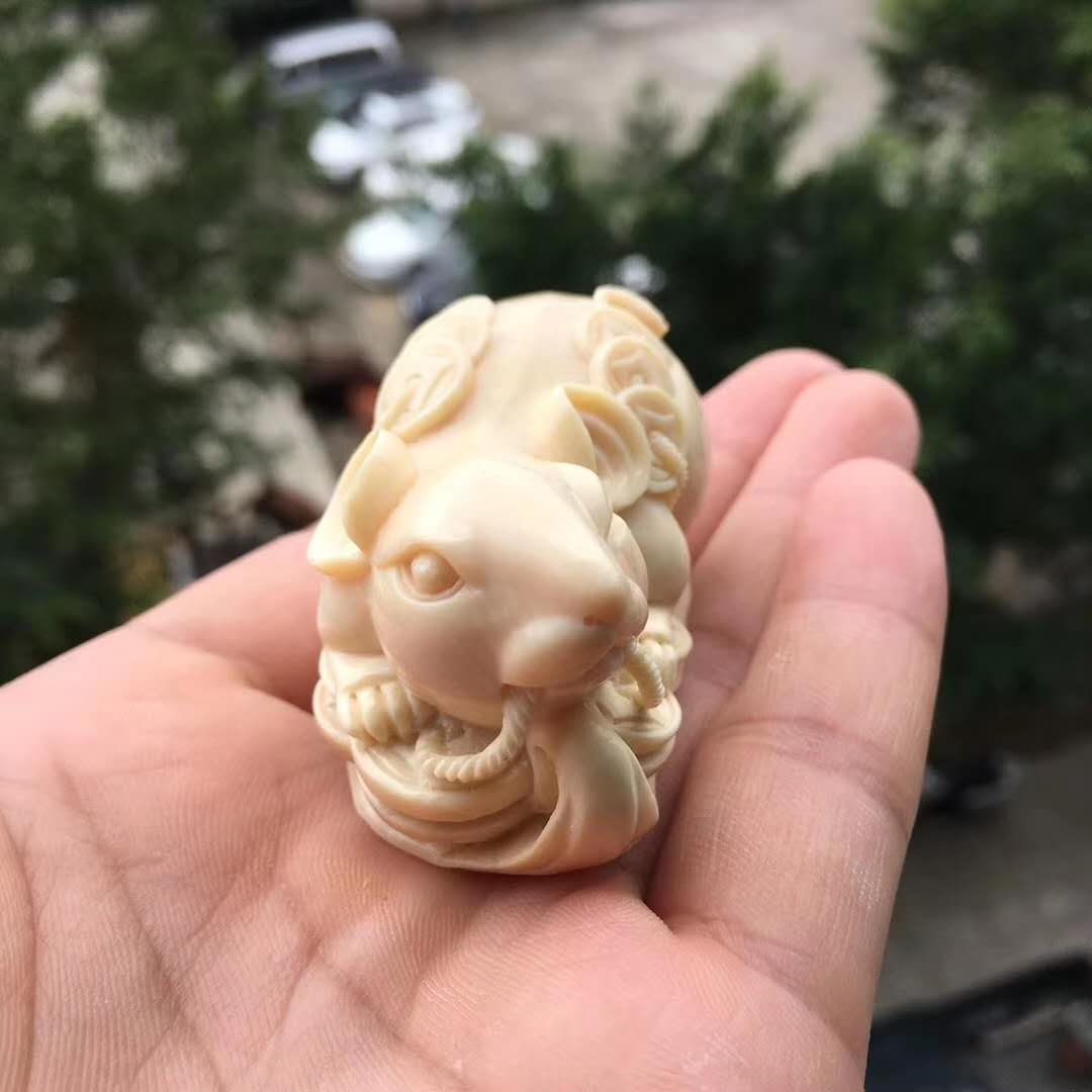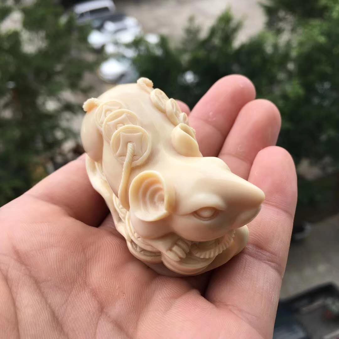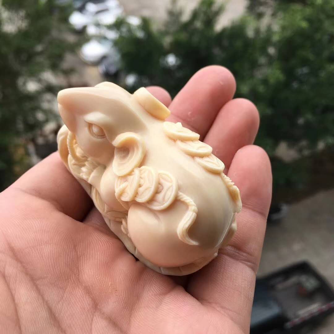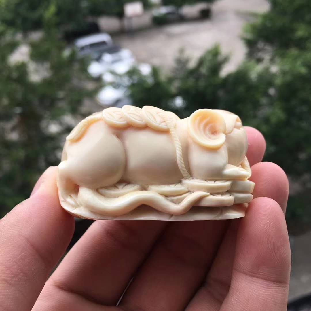 猛犸牙雕【夜夜數錢】郭先東大師原創新品,采用猛犸頂級白冰料,冰潤通透,雕工精湛細膩,極品滿雕,收藏送禮首選,配送禮盒,尺寸60*30*32mm,重60g