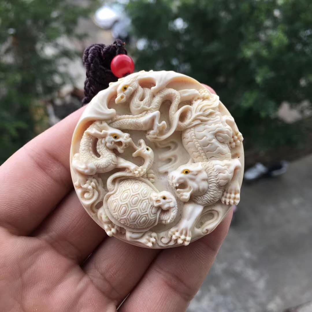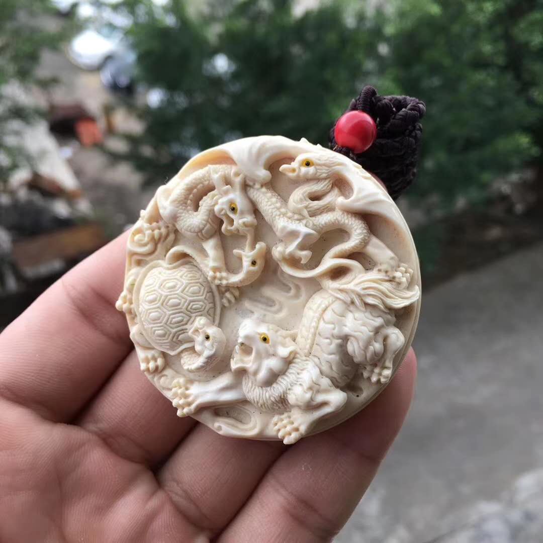 【玄陰四象】猛犸象牙掛件 全品整料一體精雕細作,一氣呵成。太極生兩儀,兩儀生四象