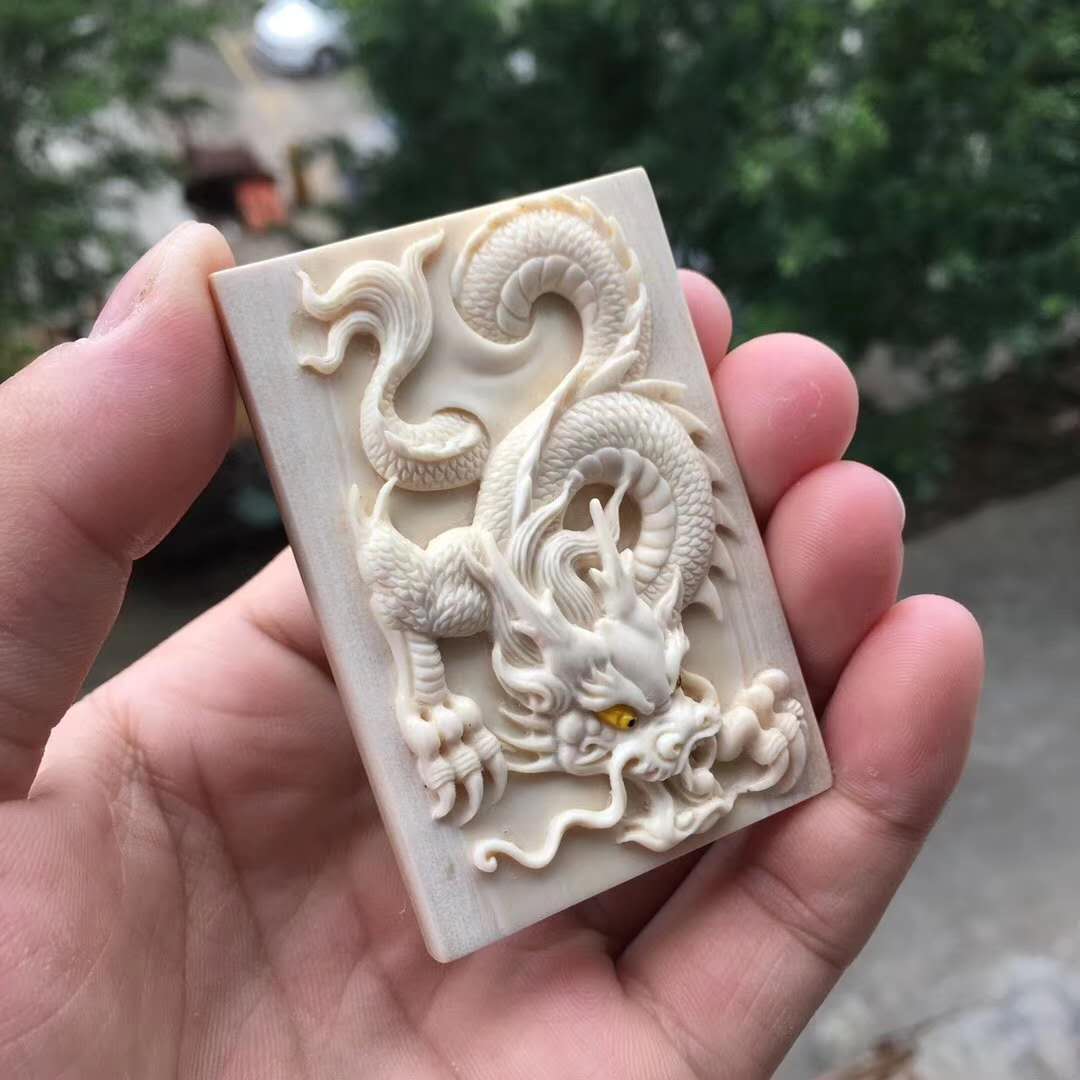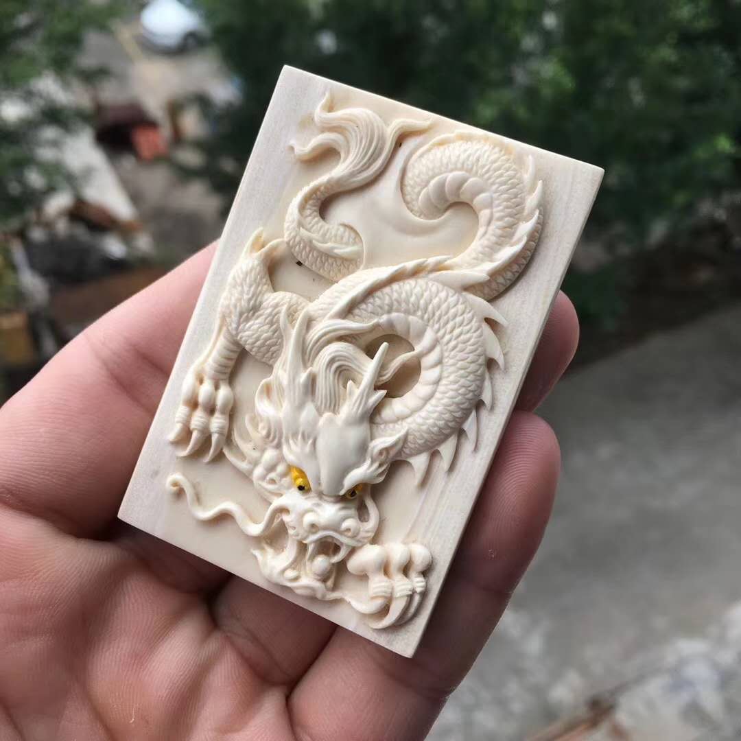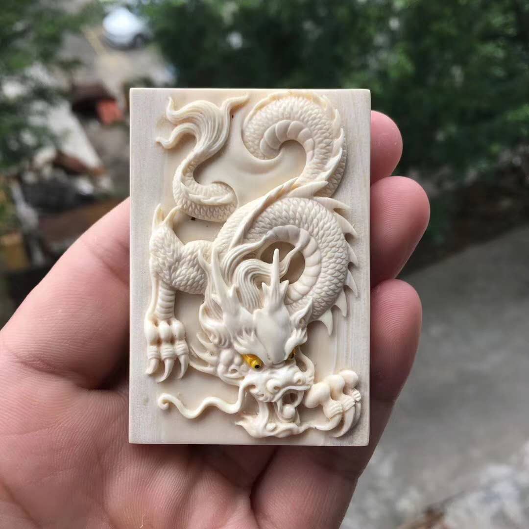 【祥龍獻瑞】勇創作品,純手工立體精雕,工藝精湛,難得佳品,雕刻簡介大氣,原色極品藍皮,大師落款,尺寸67*45*15mm, 重47.5g。克價黨繞行!精品緣作