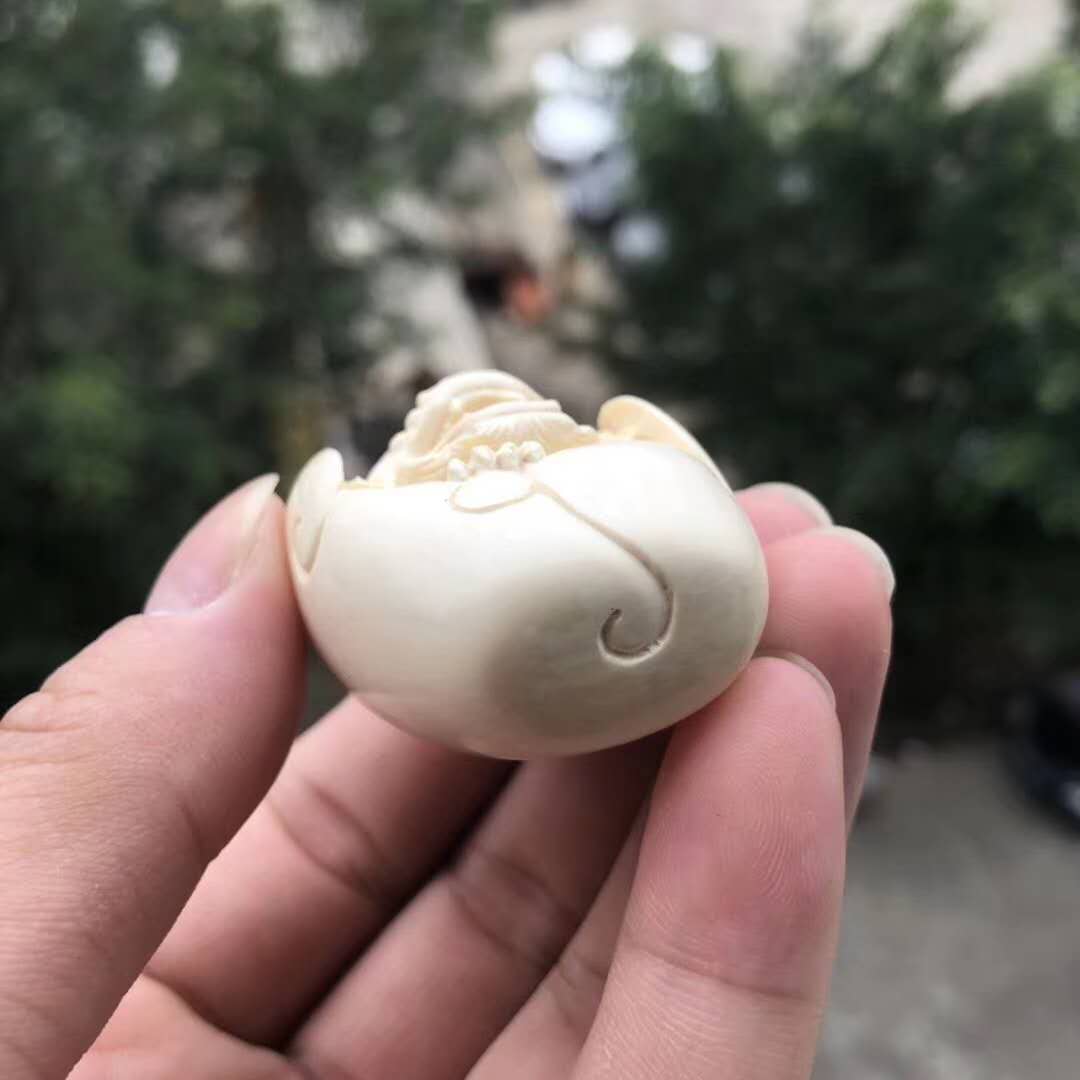 【事事如意】牙雕精品小件,圓潤精工設計造型,溫潤潔白如玉,招財辟邪,事事如意,完美品質,尺寸39*37*29mm重28.1g。