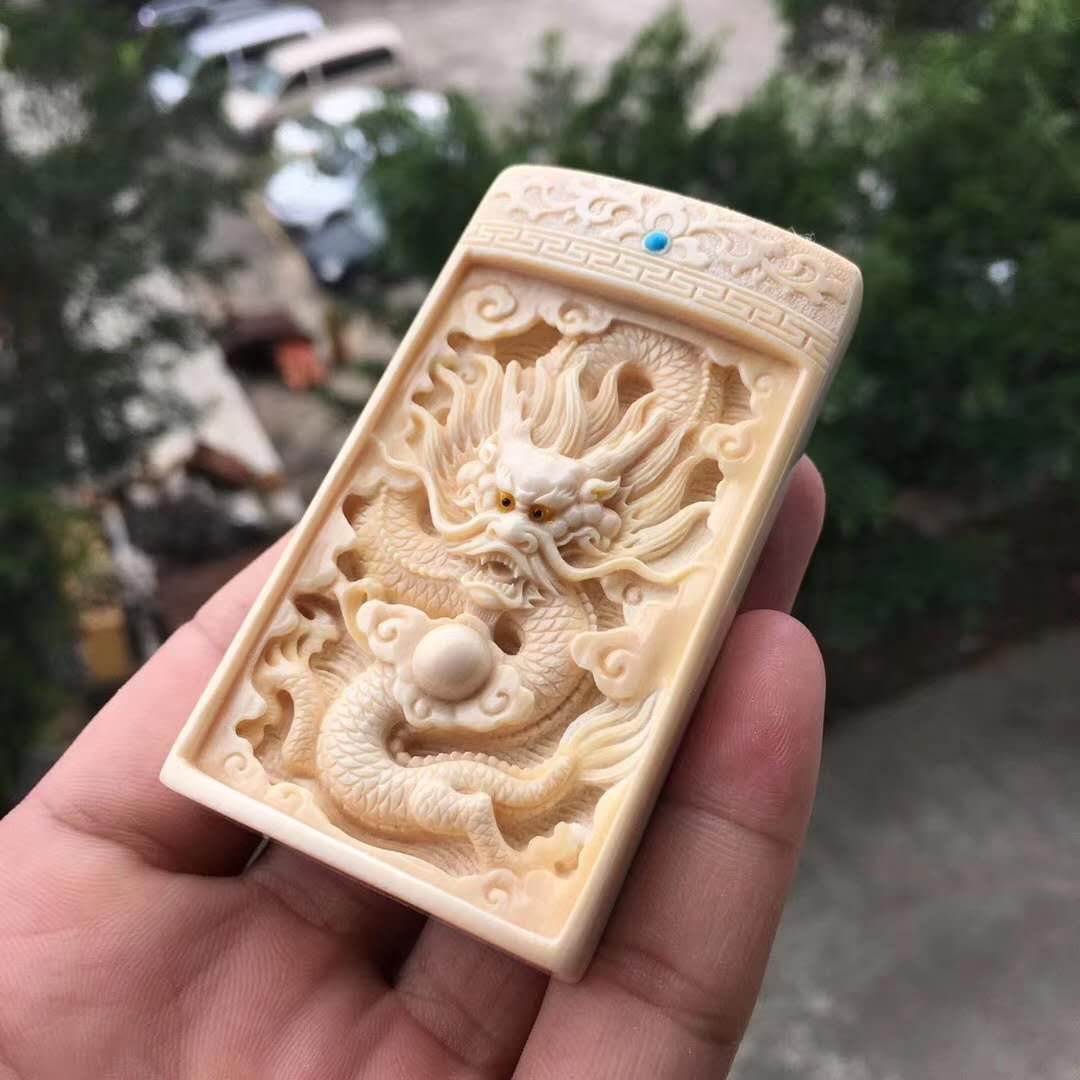 周凌勇老師作品【祥龍戲珠】掛牌。牙質水潤,細致入微的雕工勾勒,活靈活現,神形俱備,霸氣十足!背部天然猛犸牙皮,高端大氣!尺寸78*44*17mm,重65.3g。精品緣尋
