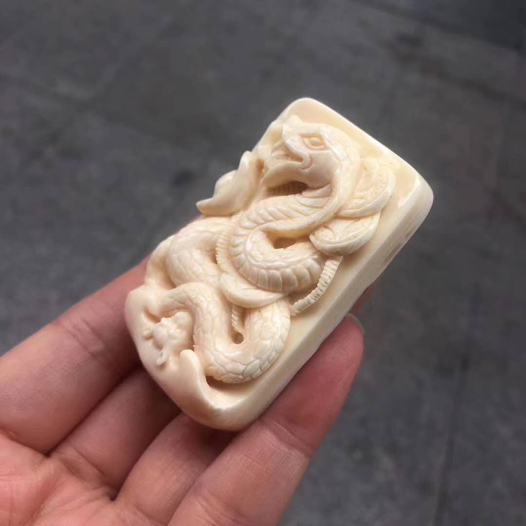 【生肖蛇】掛件,猛犸原皮冰料,大師手工雕刻,線條簡潔流暢,生動傳神,細節完美,佩戴大氣!尺寸55*34.5*17mm。重量37.2克