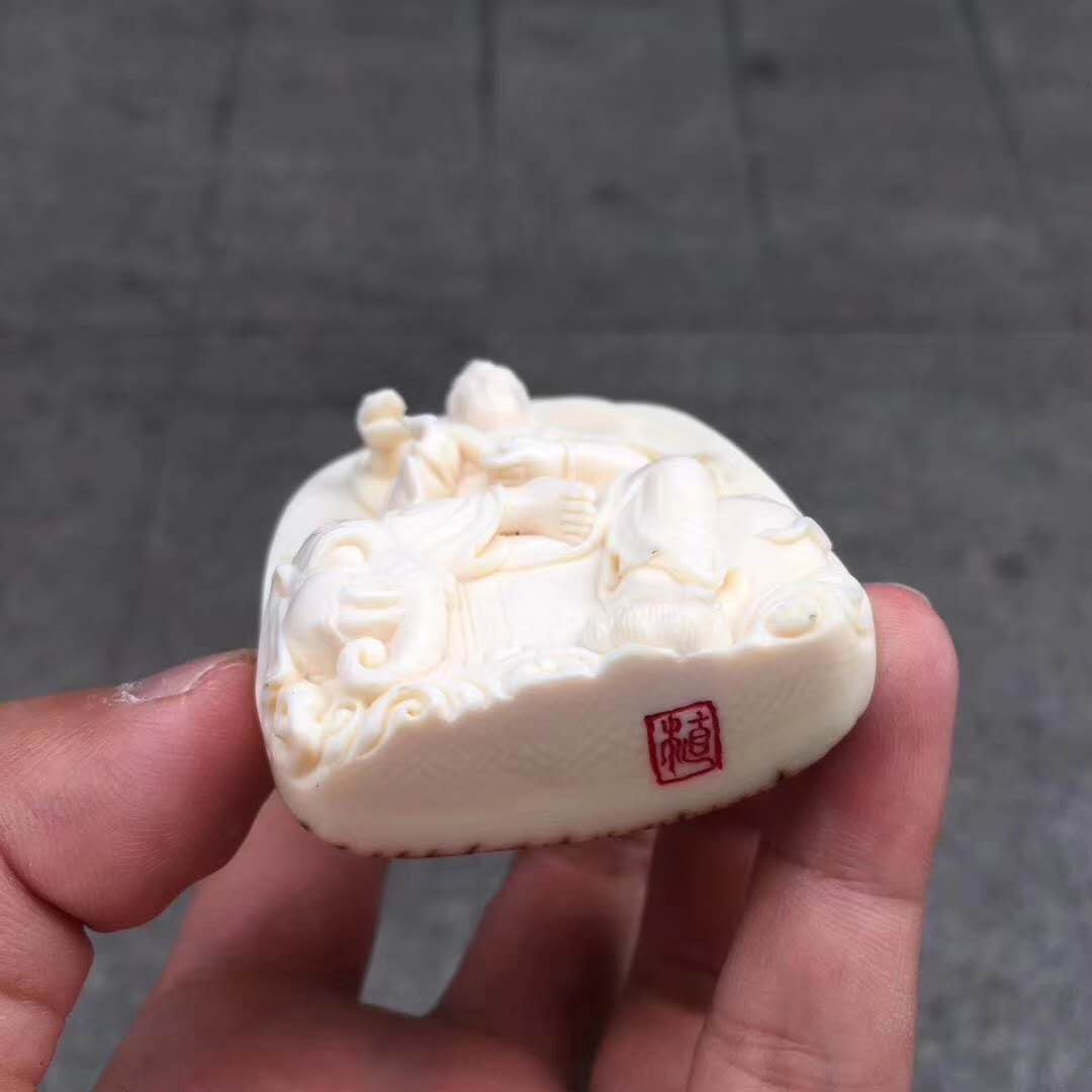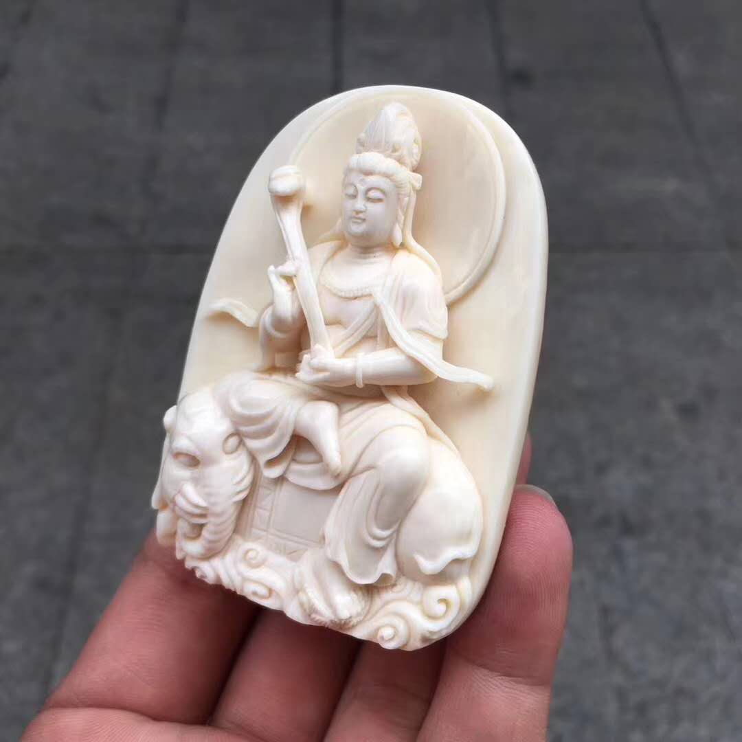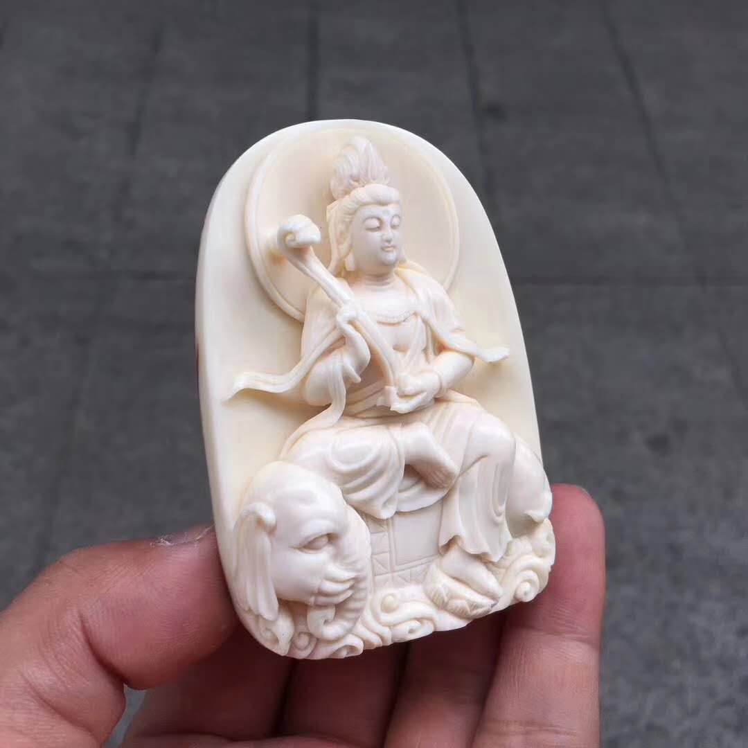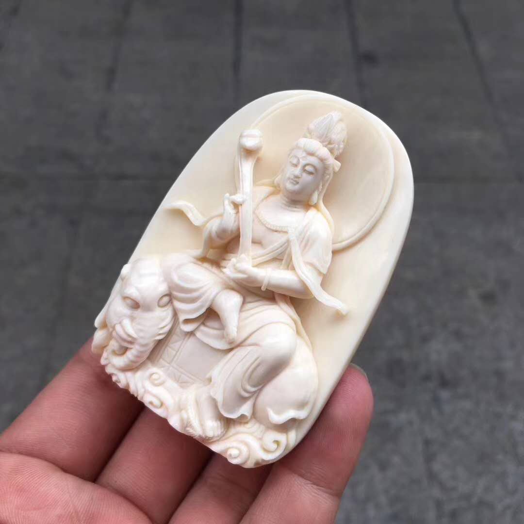 “金植”大師手工『普賢菩薩』雕件傳承非遺,拒絕屠殺!牙質頂級光潤,皮色亮澤金黃,造型設計優雅大氣,純手工開臉,傳神之至。49×70×19mm,60.2g