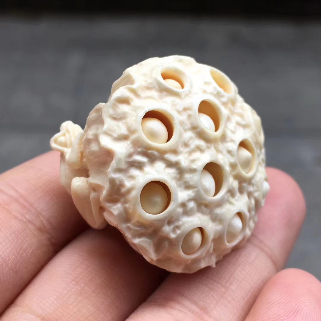 精工【蓮蓬】雕件,精選頂級猛犸冰料,料子非常潤透細膩,雕工精湛