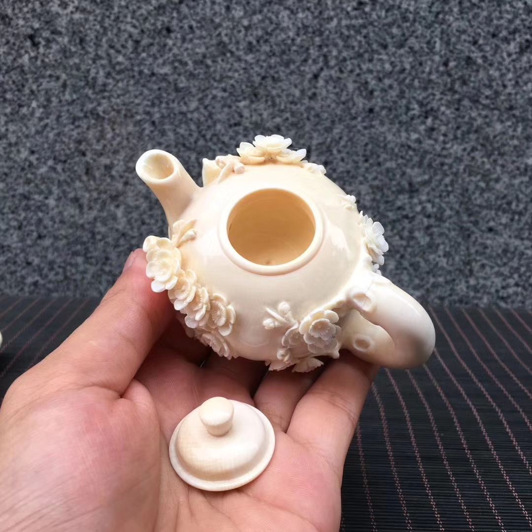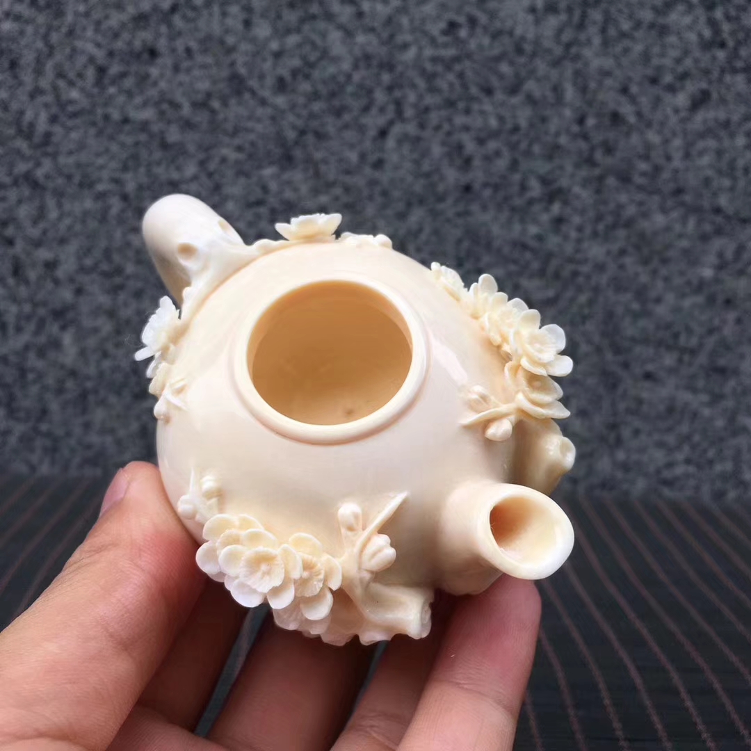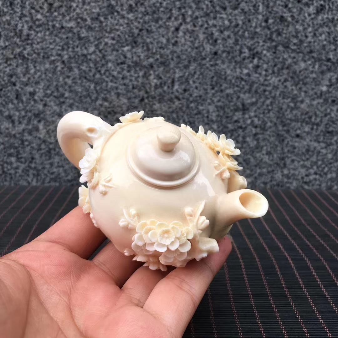 猛犸象牙精品冰料梅花茶壺,高雅之器。極具特色擺件創意收藏!梅花五瓣,象征五福臨門。98×63×60mm,178g