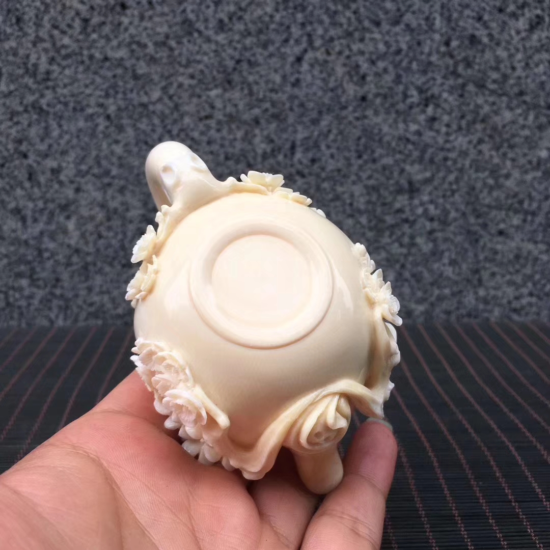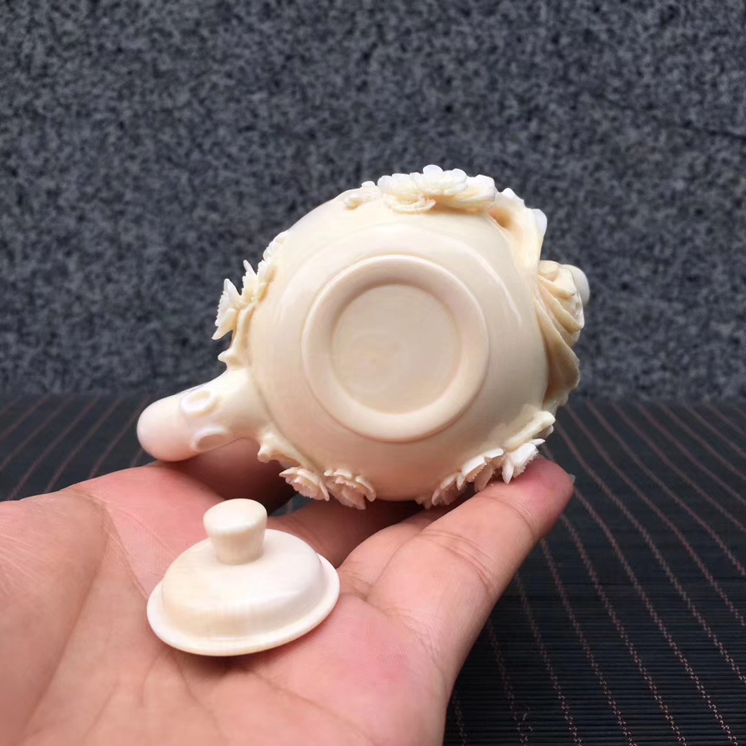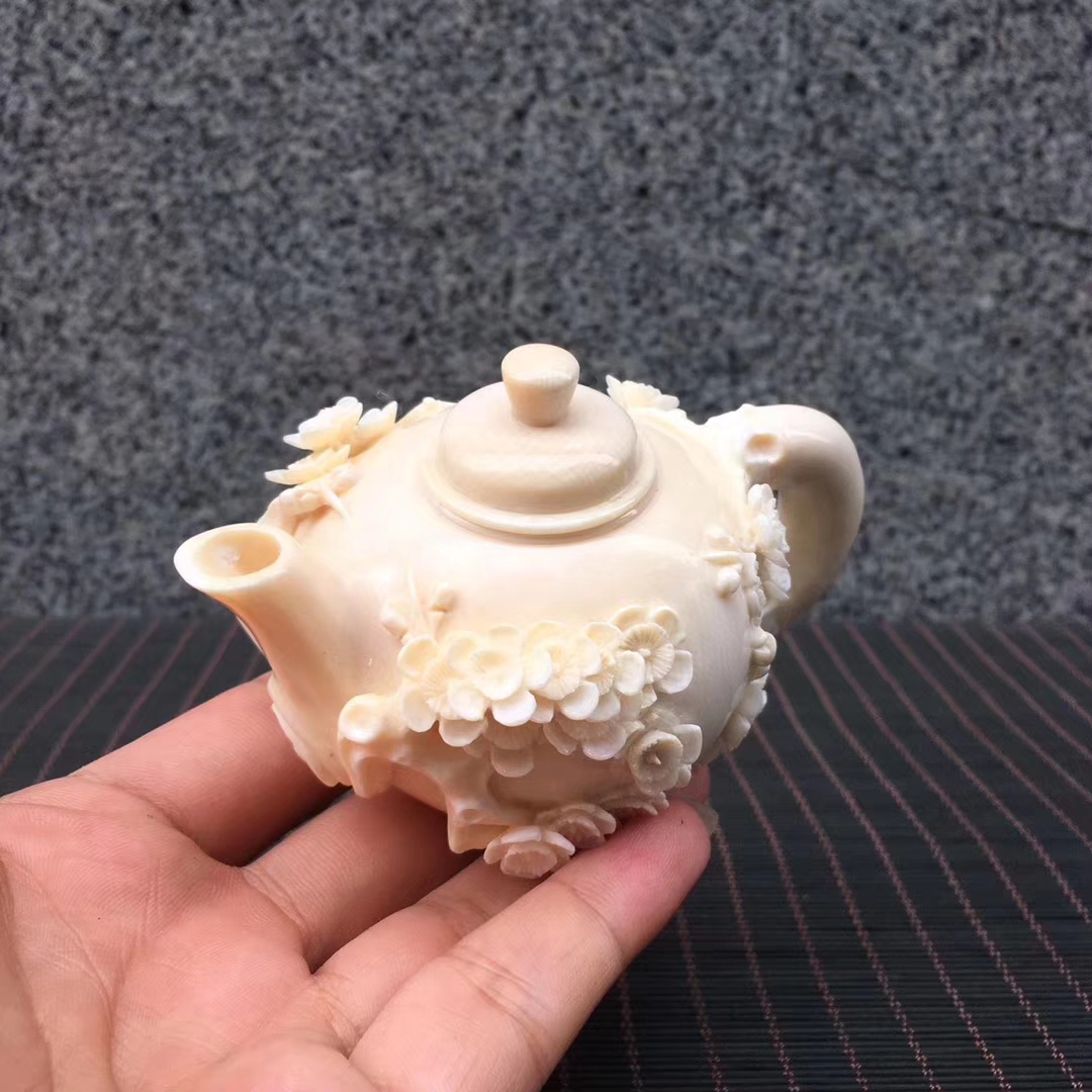 猛犸象牙精品冰料梅花茶壺,高雅之器。極具特色擺件創意收藏!梅花五瓣,象征五福臨門。98×63×60mm,178g