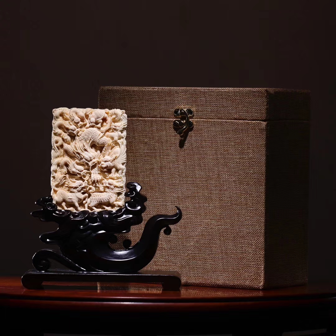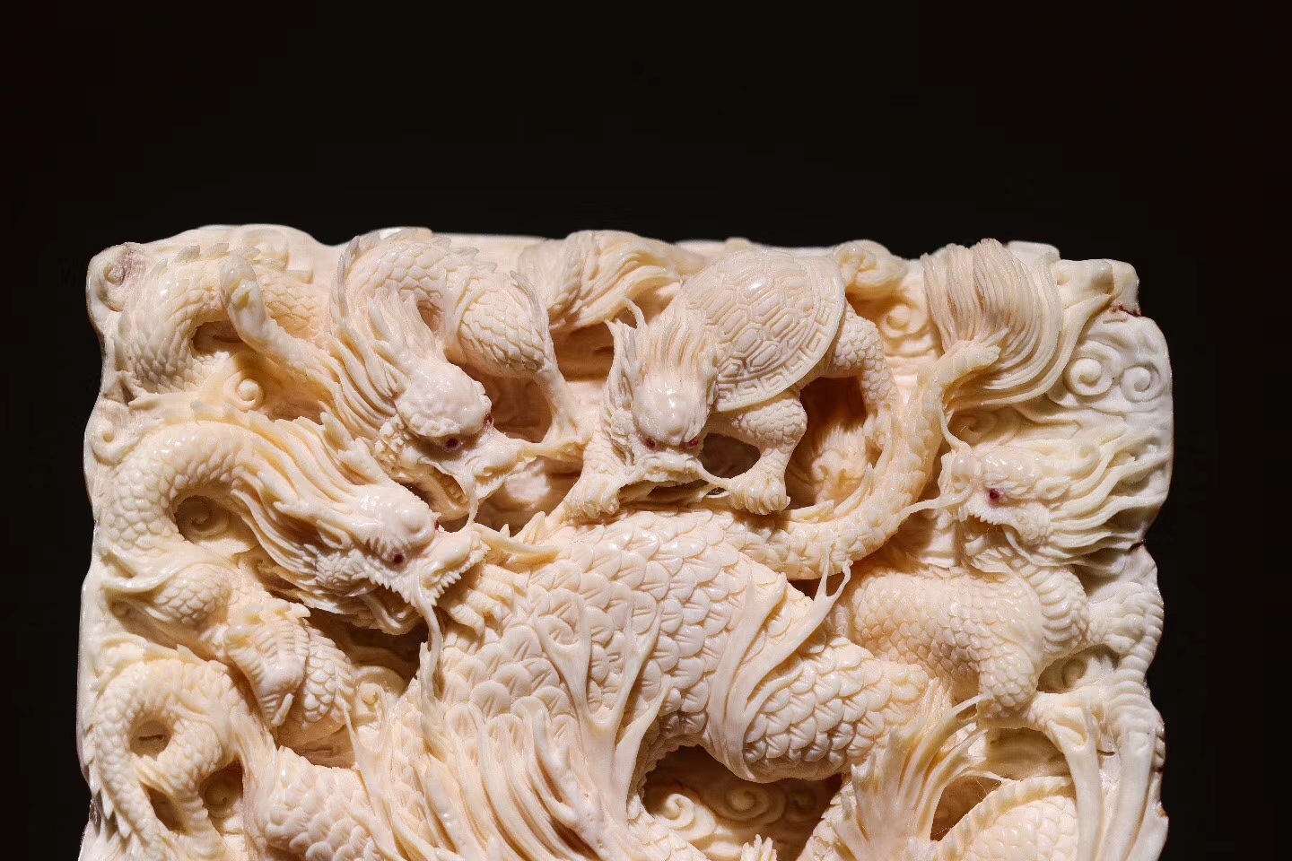 館藏級(jí)!猛犸牙雕【九龍獻(xiàn)瑞】非遺大師耗時(shí)3月精工創(chuàng)作龍之九子:囚牛、睚眥、嘲風(fēng)、蒲牢、狻猊、赑屃、狴犴、負(fù)屃、螭吻。神態(tài)傳神,層次分明,活靈活現(xiàn),不可多得!結(jié)緣配底座禮盒!