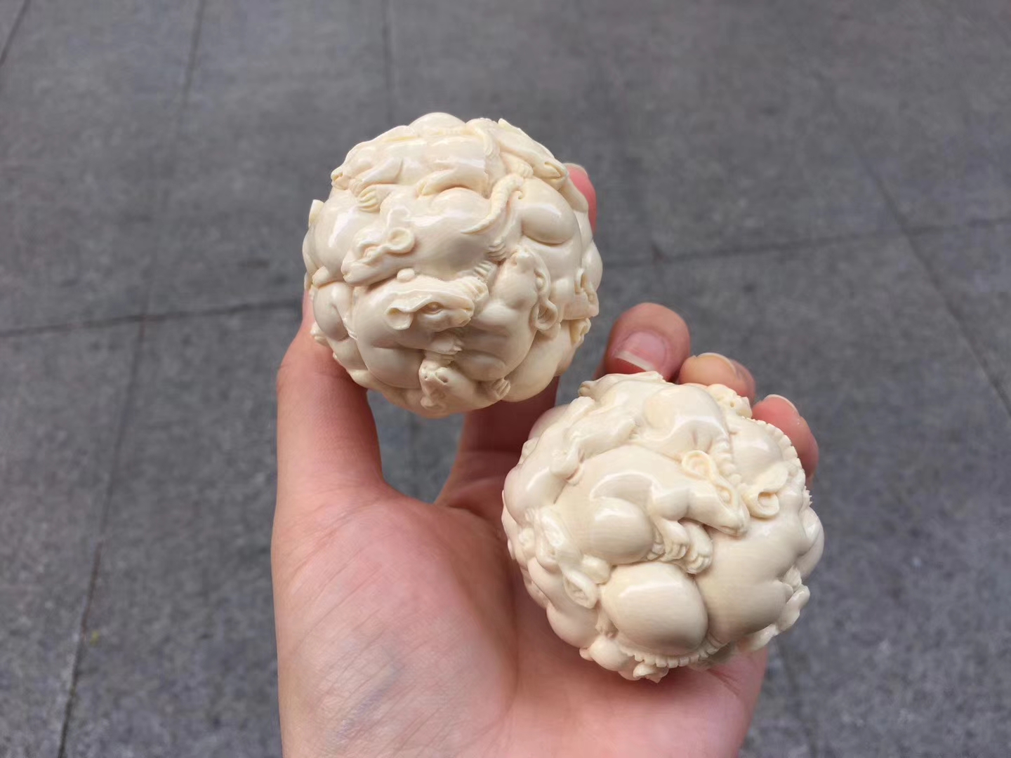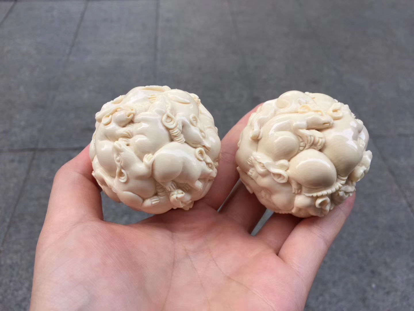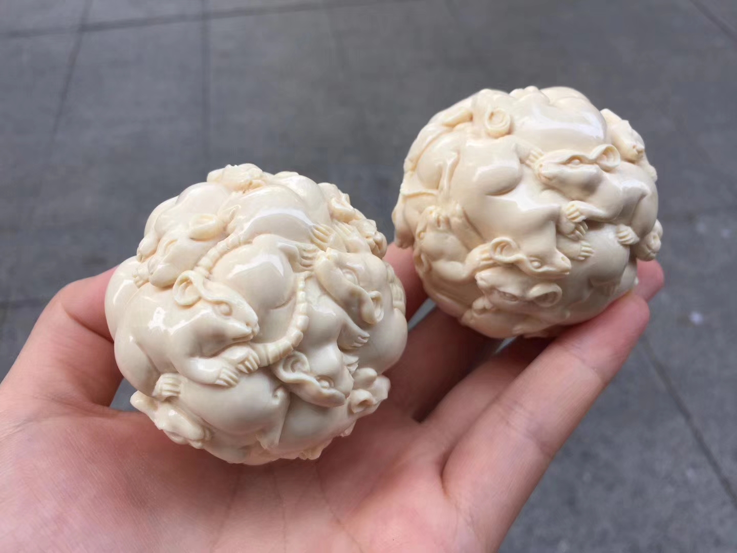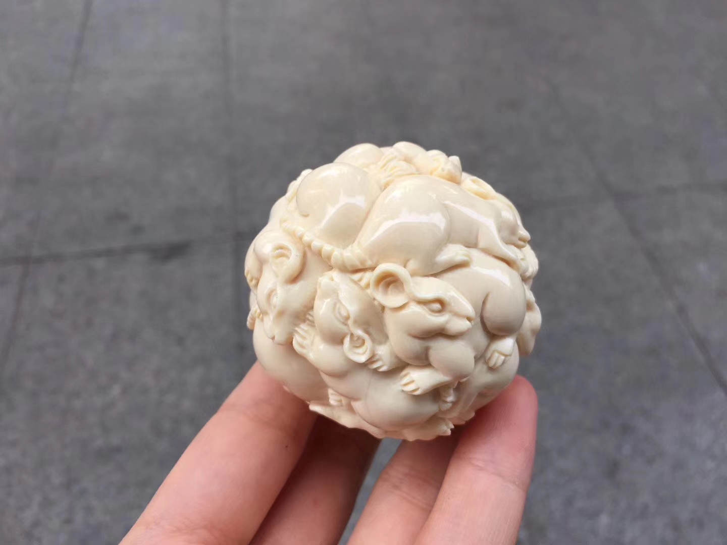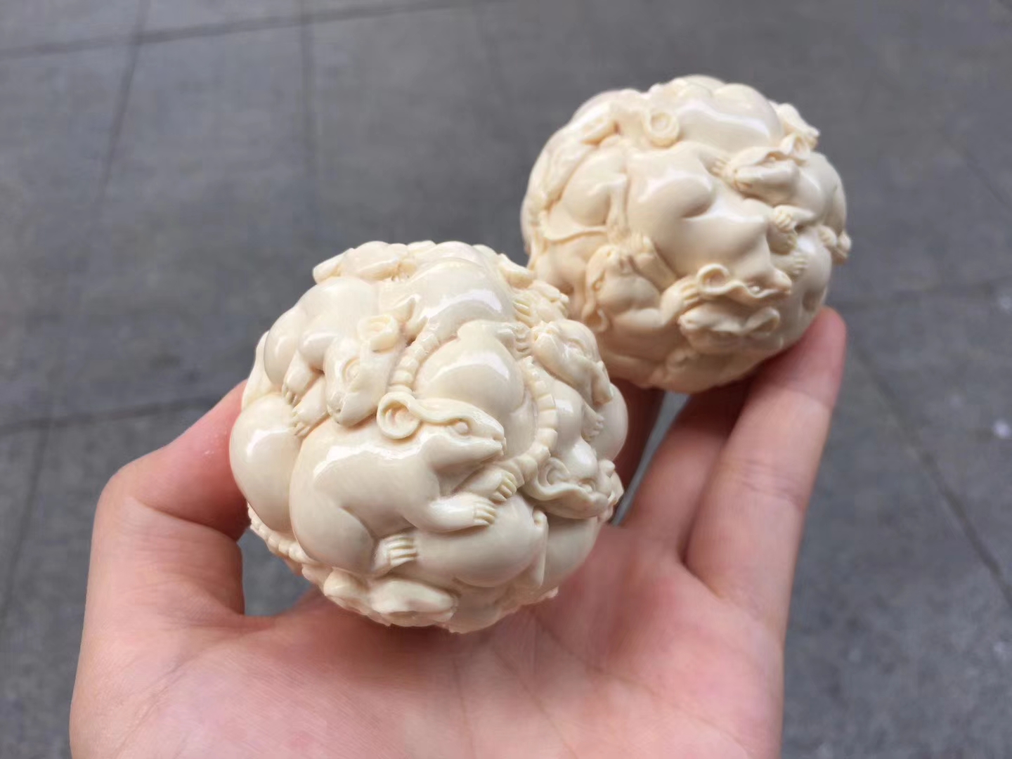 【福鼠運財】猛犸牙雕,極致滿工手球,愛不釋手,立體鏤空,極具設計感