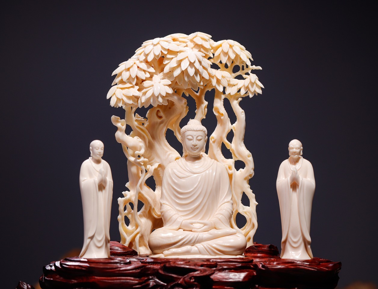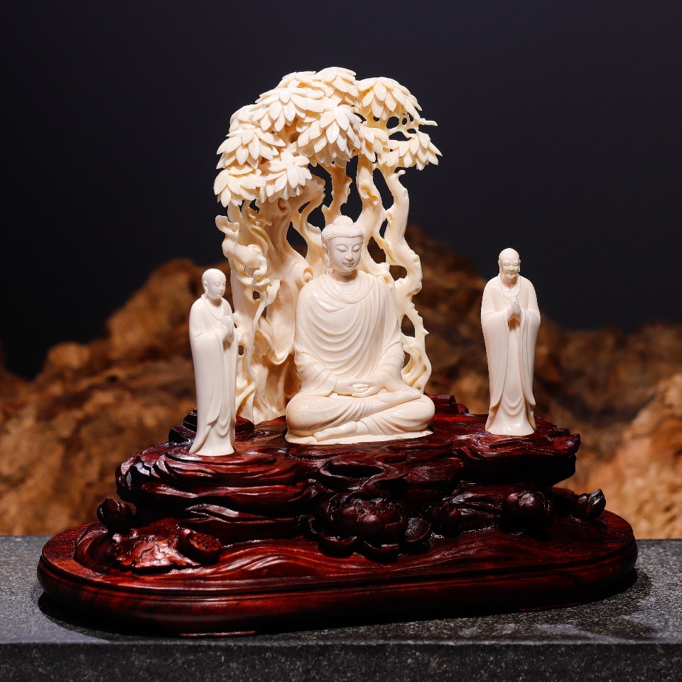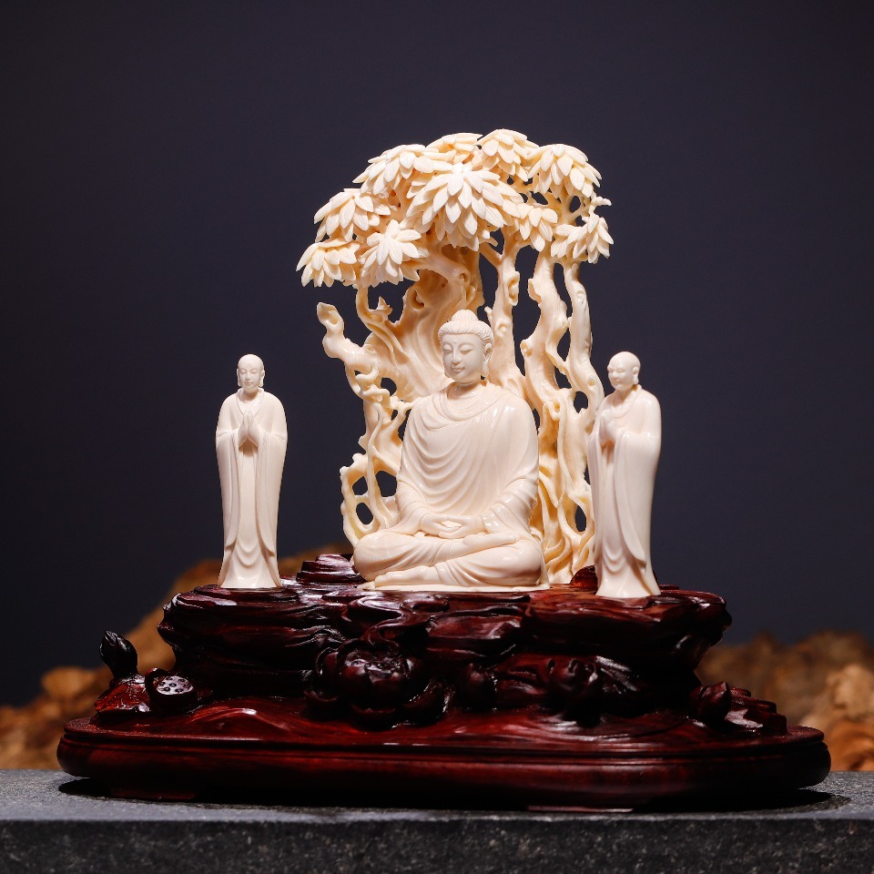 精選頂級猛犸牙冰料,手工立體精雕細琢,采用鏤空手法,細節精美細膩,作品意境深遠,配印度小葉紫檀手雕底座,意境深遠,禪意十足,可謂收藏級精品。