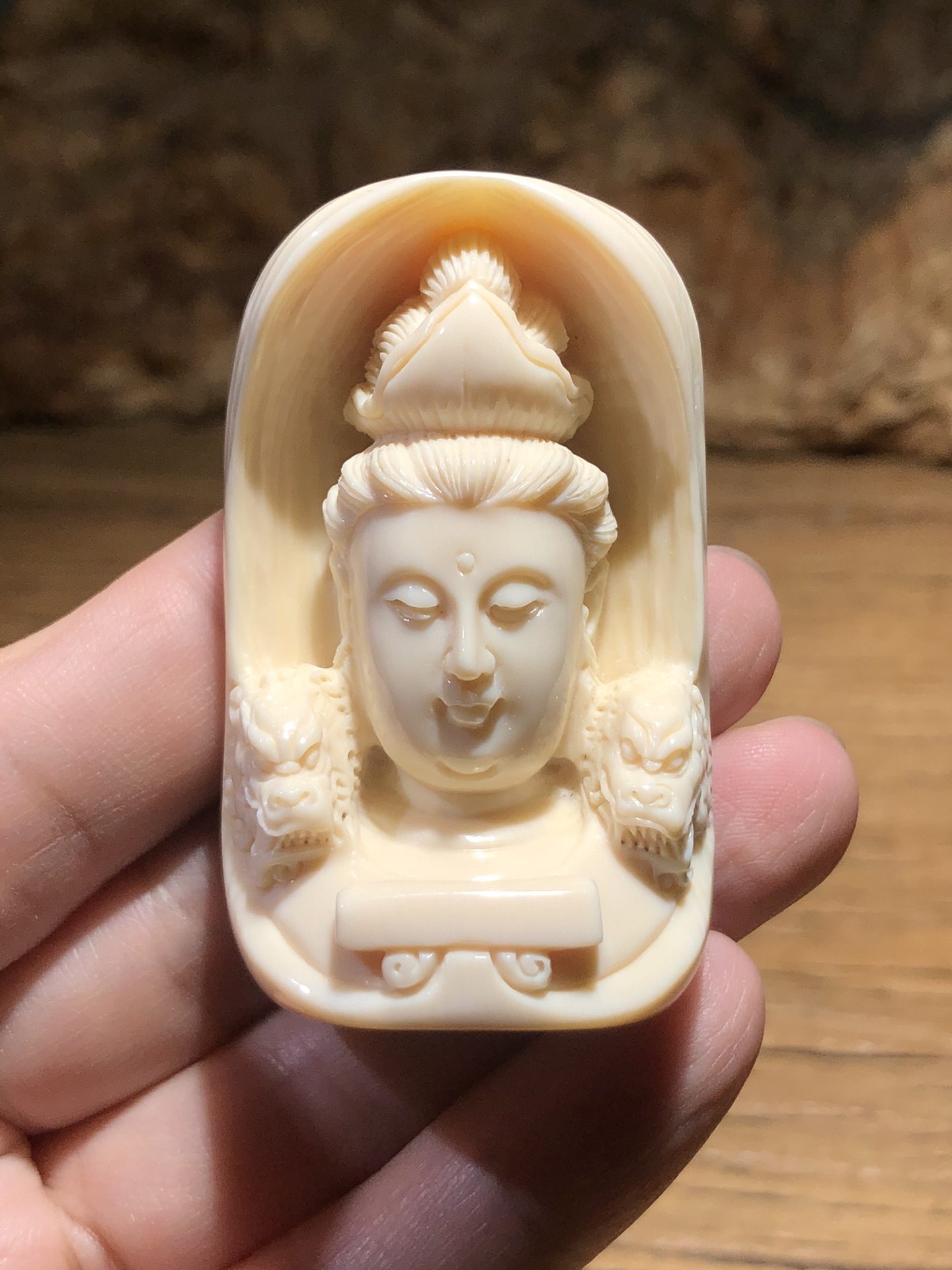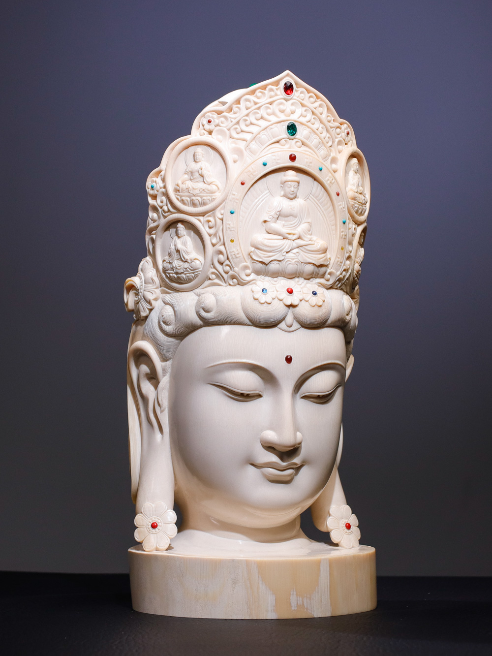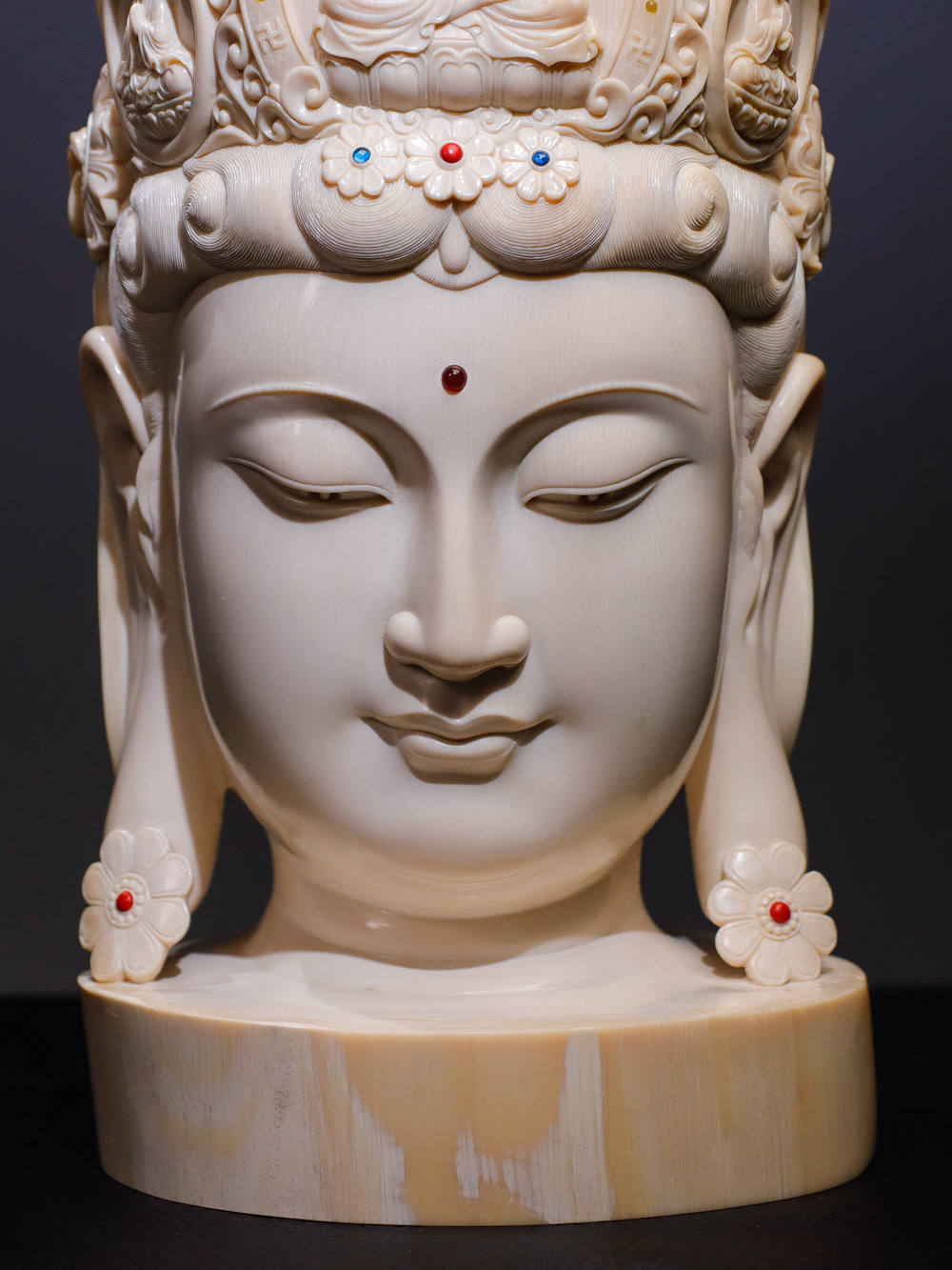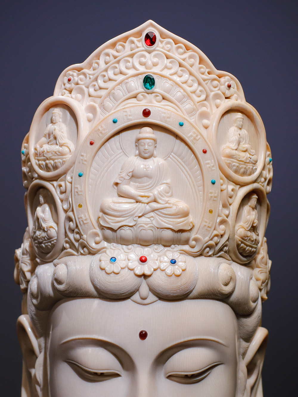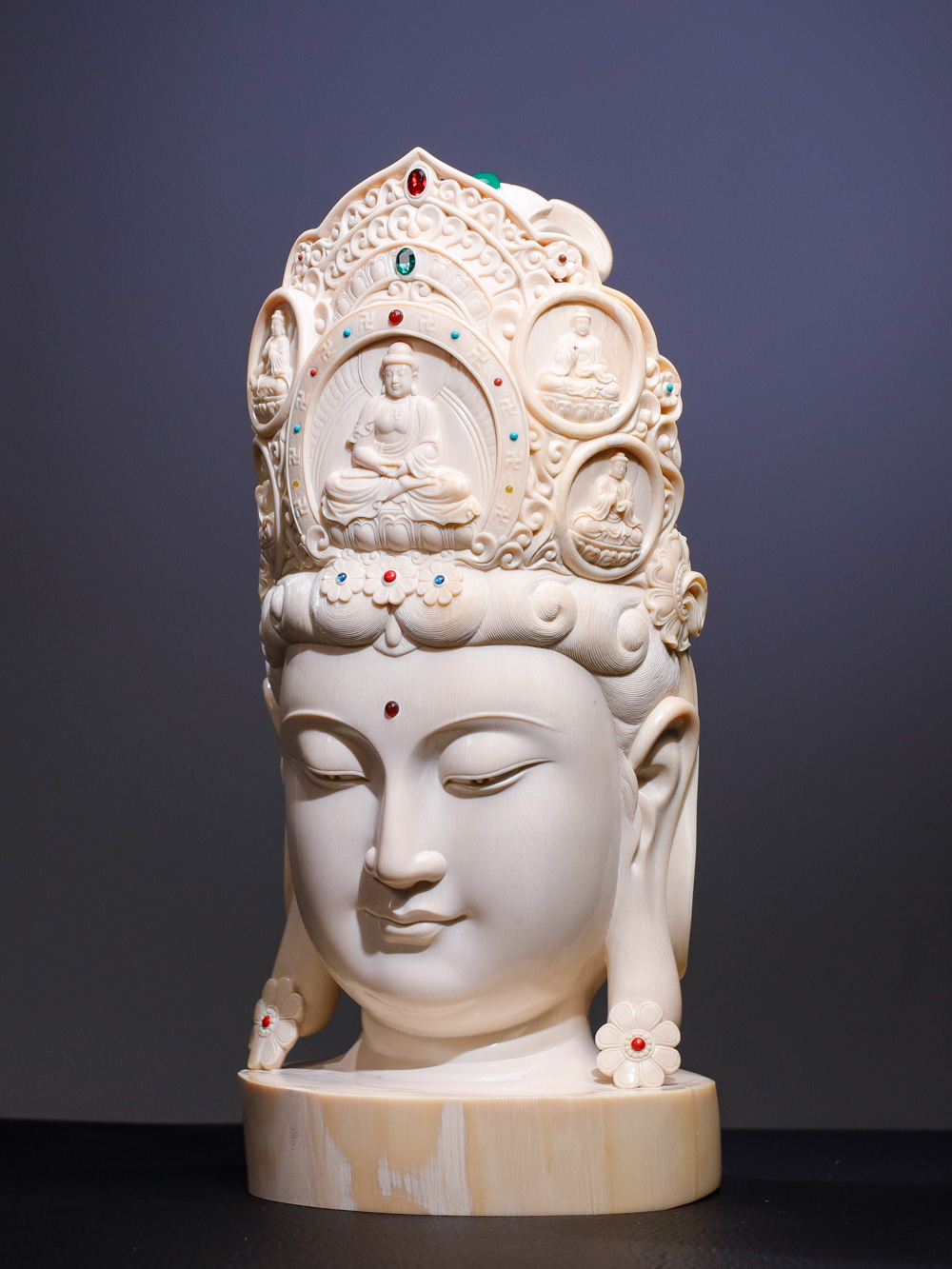 重器《觀音像》猛犸牙原牙擺件,海山大師耗時數月精雕力作