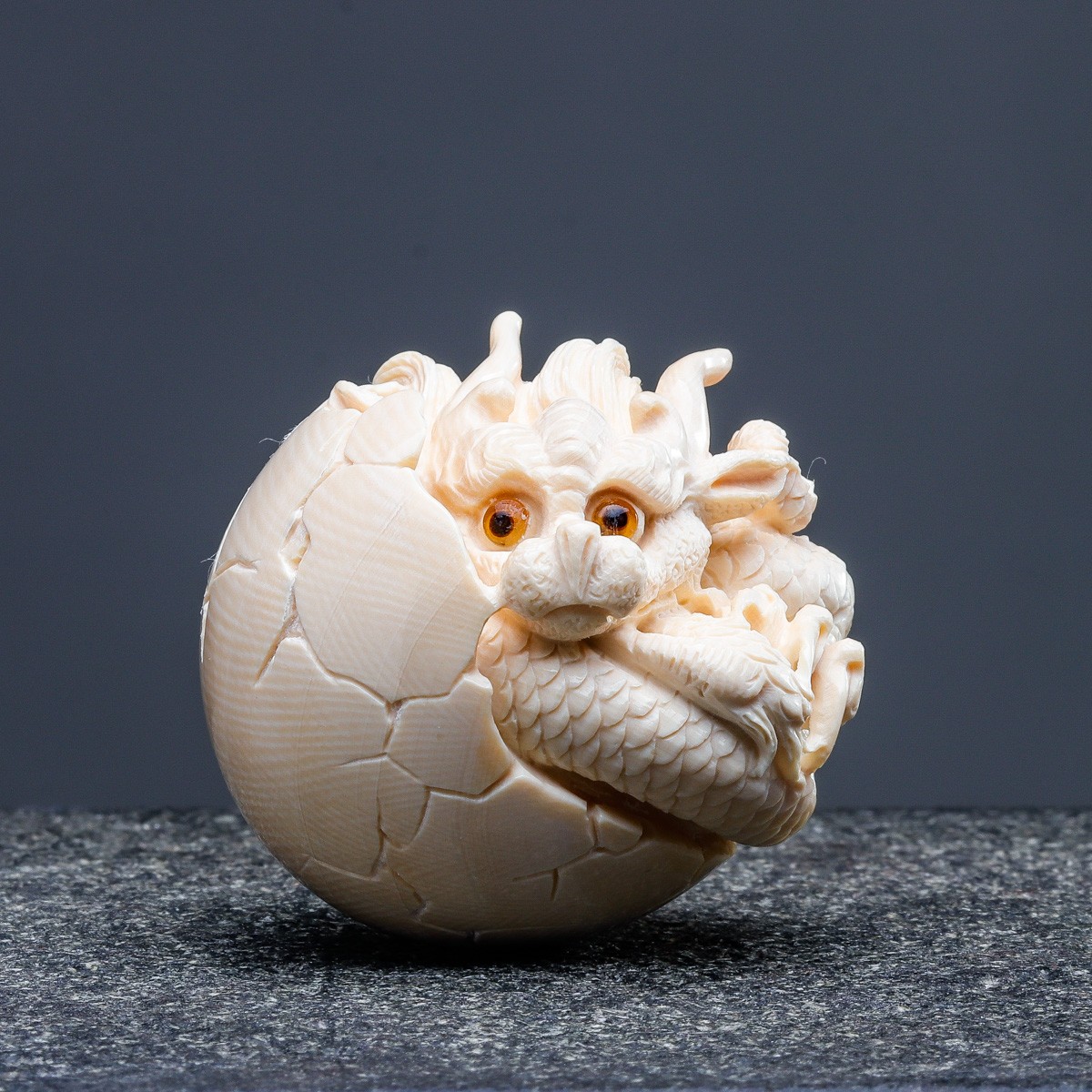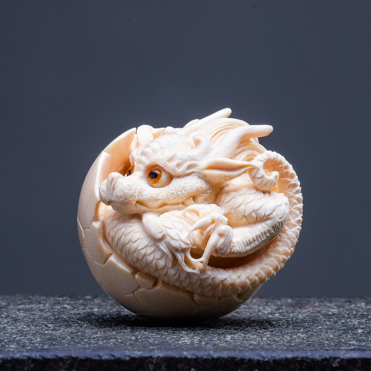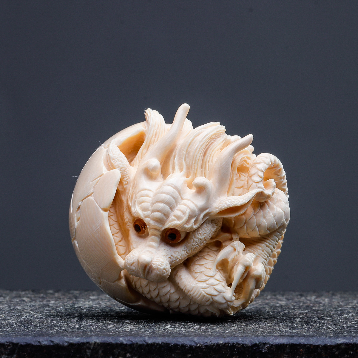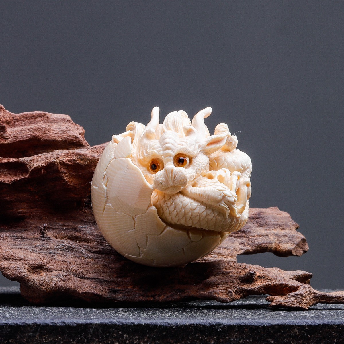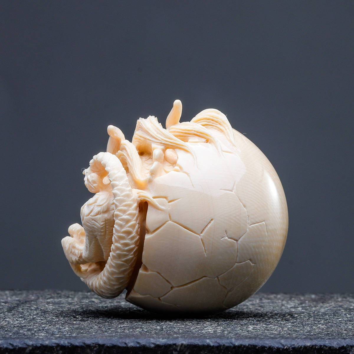 【龍蛋】 精選爆滿紋原色牙料,蟲蟲大師手工精雕,猛犸牙多少錢一克?