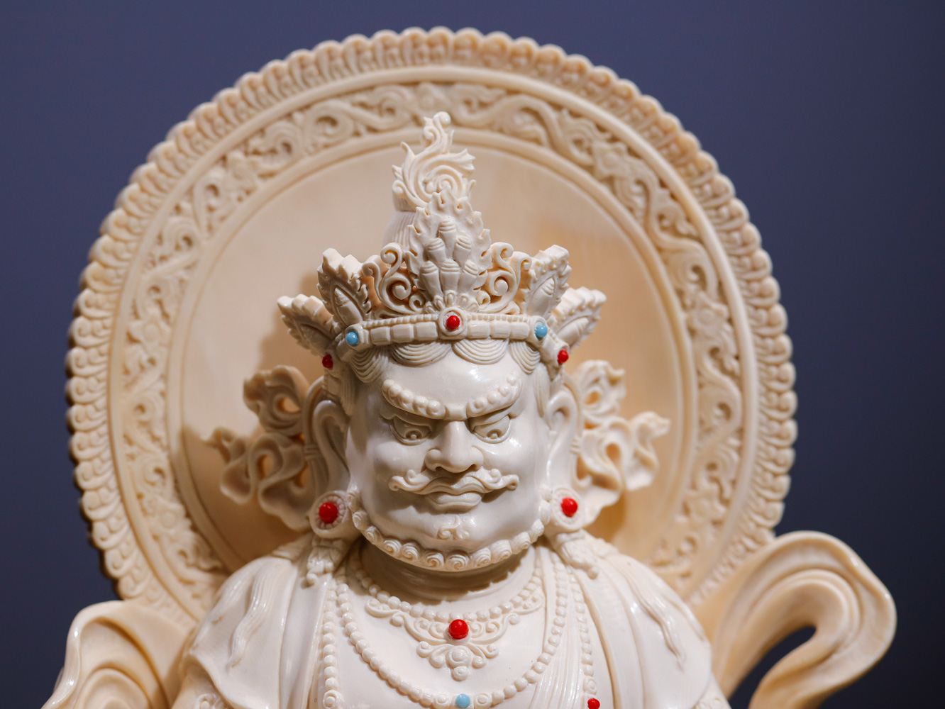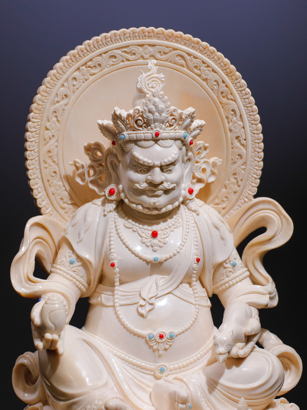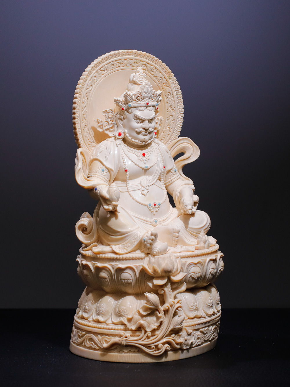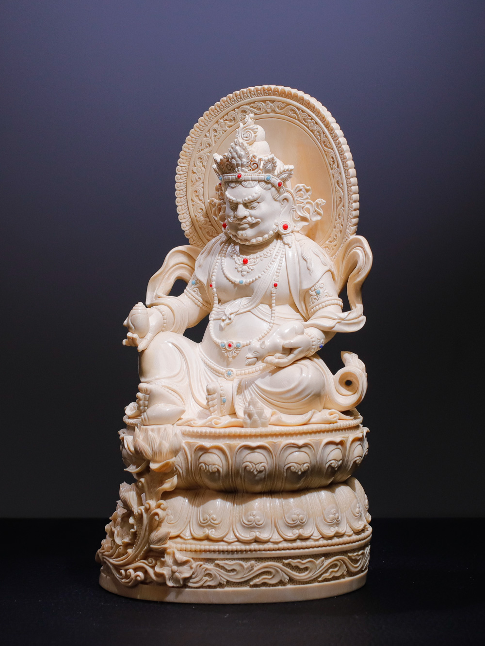 《財(cái)寶天王》賞擺,極品猛犸牙雕冰料黃財(cái)神擺件