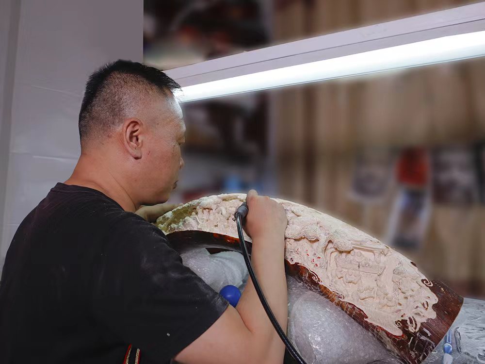 悟仰堂品牌創(chuàng)始人盧志平先生,從小跟隨父輩們及港澳牙雕老前輩們學(xué)習(xí)雕刻技藝多年,是一位資深的猛犸牙雕刻師,他領(lǐng)銜的雕刻團(tuán)隊(duì)創(chuàng)作的作品以其精湛的技藝、獨(dú)特的創(chuàng)意和深刻的文化內(nèi)涵而著稱(chēng),深受全國(guó)各地資深牙雕者的喜愛(ài)和收藏。其本人和公司獲得本地區(qū)第一批非物質(zhì)文化遺產(chǎn)傳承人和傳承單位。